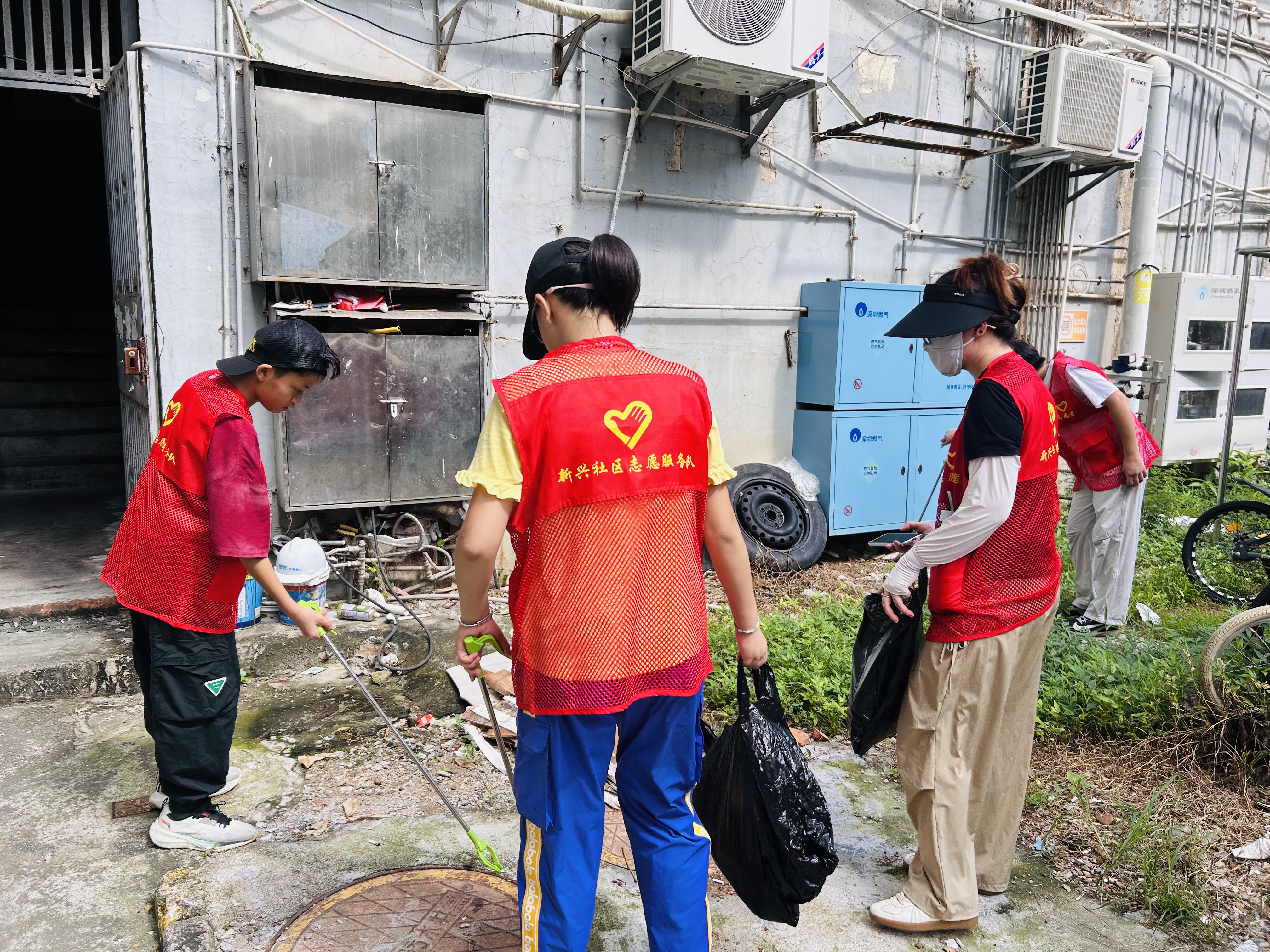罗湖家园网讯:8月12日,新兴社区“行走黄贝,美丽街区”活动如期开展,志愿者们身穿红马甲行走在辖区大街小巷,捡拾垃圾,清理卫生死角。
