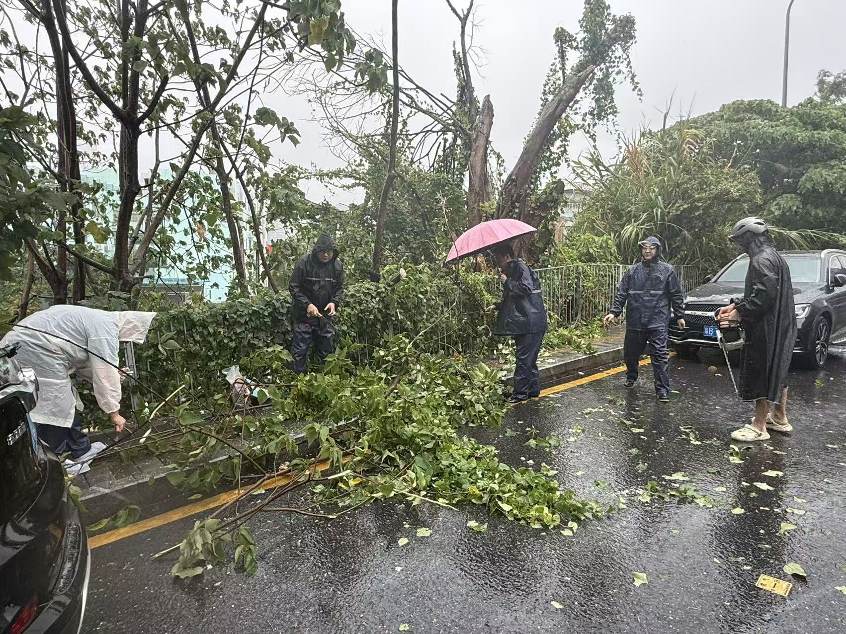 罗湖家园网讯:9月8日,受深圳雷雨大风天气影响,新兴社区发生树木断裂、倒伏现象,为及时消除安全隐患,新兴社区党委对辖区内断裂的树枝进行了集中修剪。