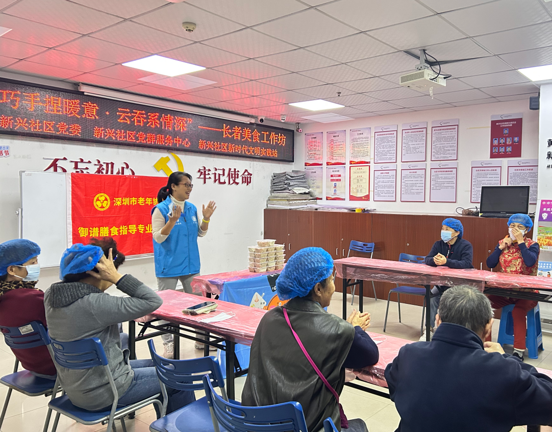 罗湖家园网讯:11月21日,新兴社区党群服务中心活动室暖意满满,“巧手捏暖意 云吞系情深”——长者美食工作坊活动开展中,社区老人和志愿者们一起现场包云吞。并将包好的云吞送到高龄长者家中。