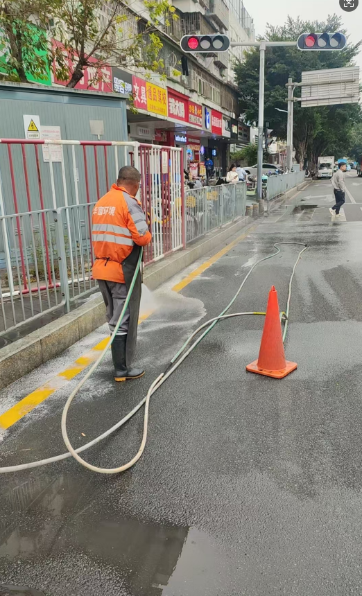 冲洗路面,辖区“美颜”