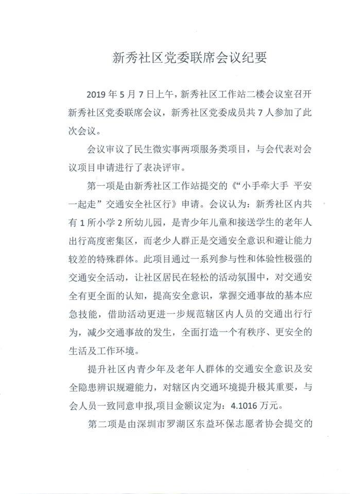 新秀社区5月党委会议审议民生微事实项目会议纪要