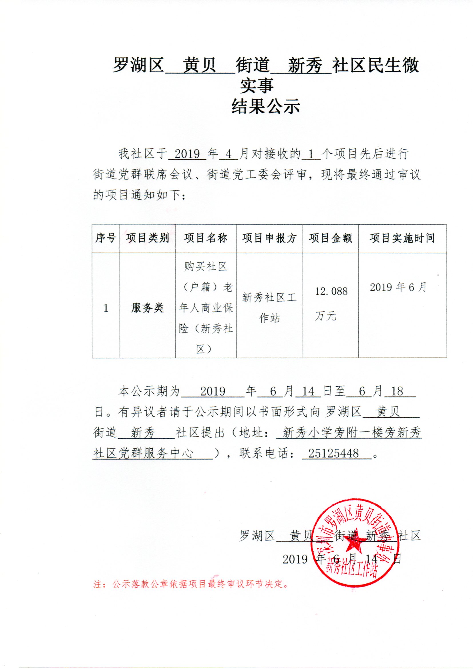 购买社区(户籍)老年人商业保险(新秀社区)结果公示