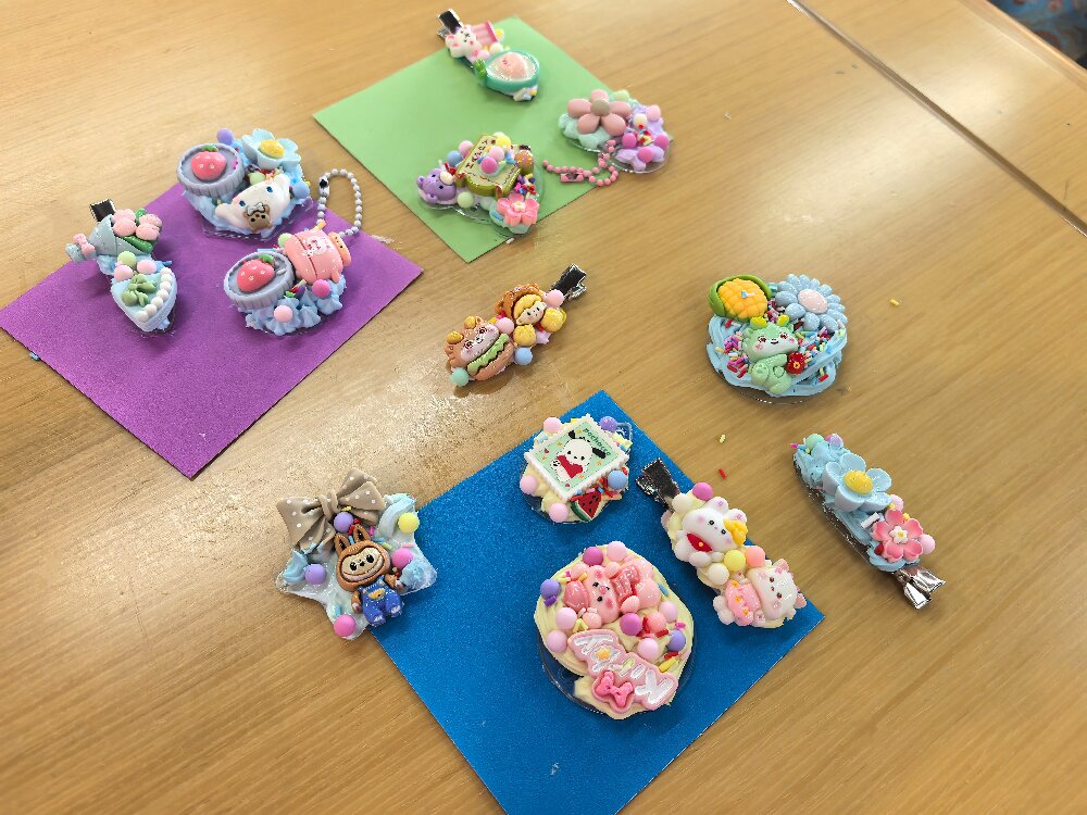 安全知识讲解结束后,进入了充满乐趣的奶油胶手工制作环节,孩子们兴致勃勃地挑选自己喜欢的材料,发挥想象力和创造力,小心翼翼地将奶油胶挤在冰箱贴或发夹底座上,然后,粘上蝴蝶结、小花朵、卡通人物等装饰。不一会儿,一个个色彩鲜艳、造型独特的奶油胶冰箱贴和发夹就完成了,孩子们看着自己的作品,脸上洋溢着满满的成就感。