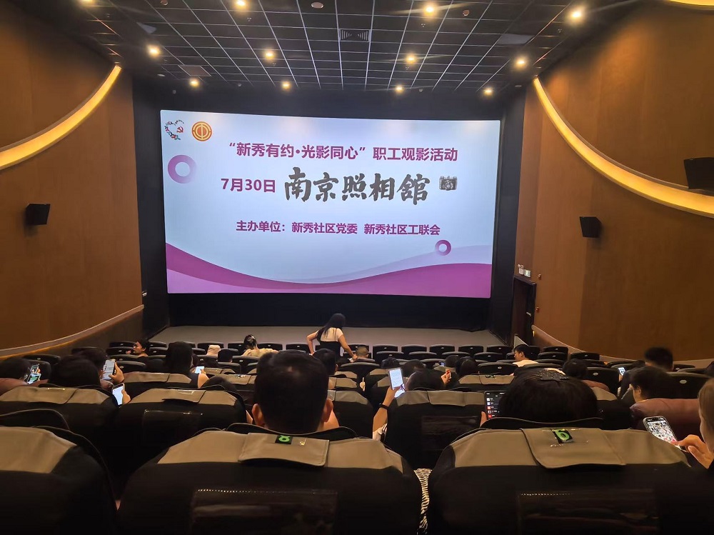 2025年7月30日晚,新秀社区党委、新秀社区工联会开展职工观影活动,辖区近130名职工共同观影《南京照相馆》