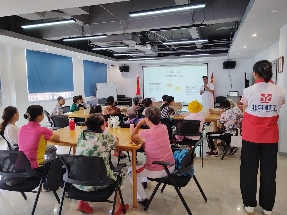 在阿尔茨海默病宣传日到来之际,为切实提高社区居民对阿尔茨海默病的认知水平,筑牢疾病预防与干预防线,9月18日下午,在新秀社区党委的引领下,新秀社区党群服务中心携手新秀社康中心、民生保险深圳分公司、深圳市北斗社会工作服务中心精心策划并开展 “听讲座学护脑,做手工促认知” 阿尔茨海默病守护行动,20名社区长者参与了此次活动。