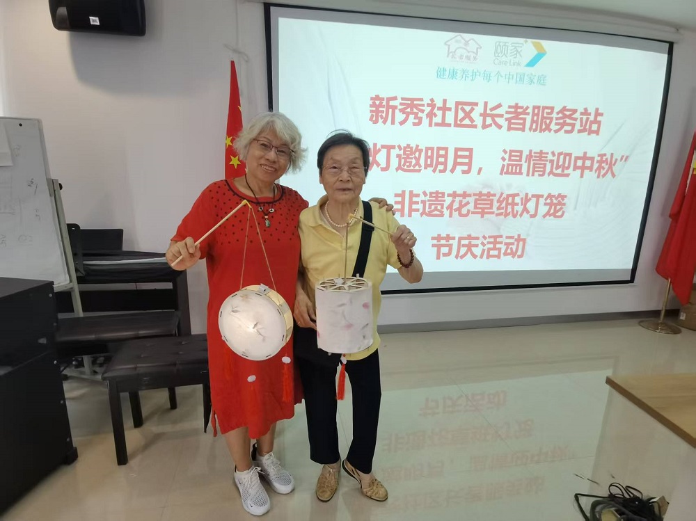 9月28日上午新秀社区长者服务站开展“花灯邀明月,温情迎中秋”非遗花草纸灯笼手工制作活动。