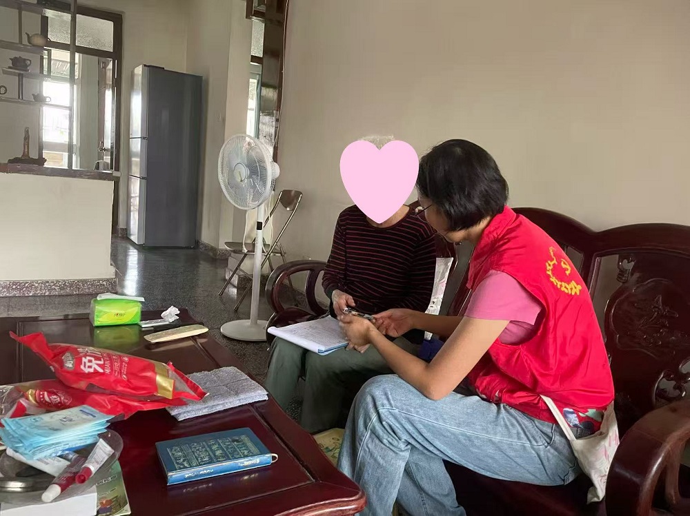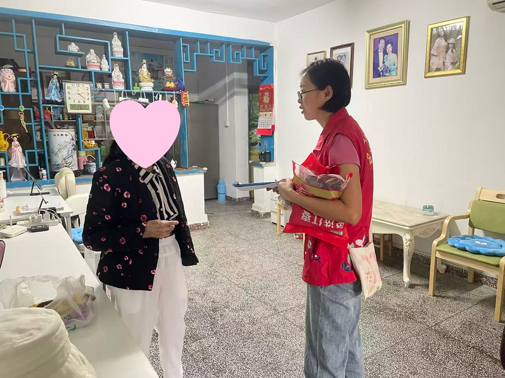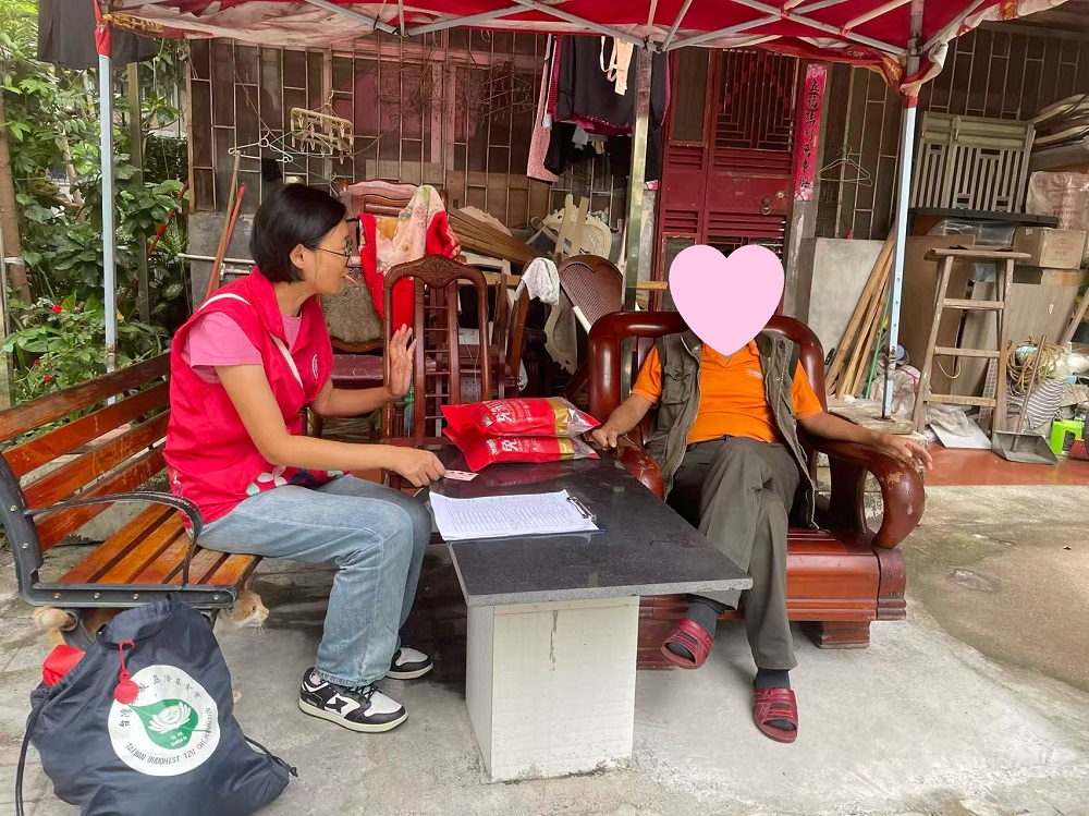 活动当日,社工带着提前准备的慰问品,逐一走进社区残疾长者的家中。每到一户,社工热情地与长者们打招呼、拉家常,为他们送上重阳节的祝福,耐心询问他们最近的身体状况、饮食起居以及生活中遇到的困难,静静倾听长者讲述过去的工作经历、家庭故事,或者生活中的小趣事,并不时给予积极的回应理解与鼓励长者。最后还贴心地向长者们分享了社区里其他长者积极生活的小故事,鼓励他们始终保持乐观的心态,勇敢面对未来的每一天。