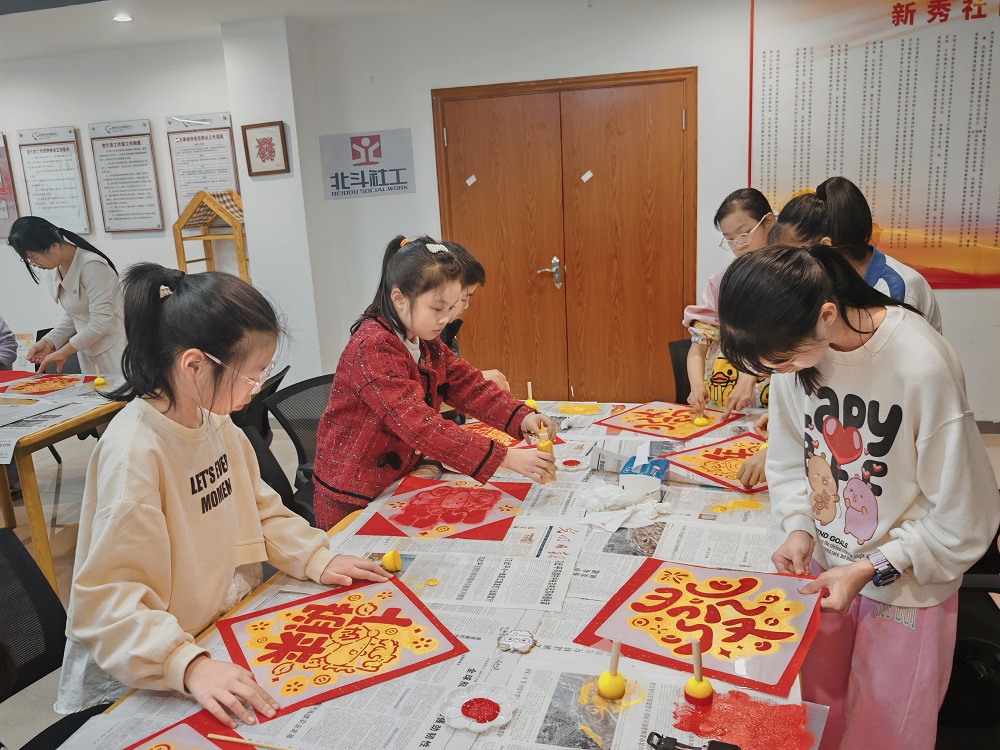 新秀社区开展“一拓一印绘年味”儿童青少年专注年画挂历制作活动