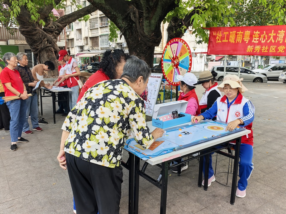罗湖家园网讯:为弘扬社会工作专业理念,提升社工服务知晓度与影响力,切实把便民服务送到居民家门口,3月19日下午,在新秀社区党委引领下,深圳市北斗社会工作服务中心驻新秀社区社工点以“社工暖南粤 连心大湾区”为主题,举办第十九届深圳社会工作宣传周活动。本次活动融合趣味游戏互动、社工服务宣传、健康便民义诊三大板块,以寓教于乐的形式拉近与居民距离,让专业社工服务更接地气、更入人心。