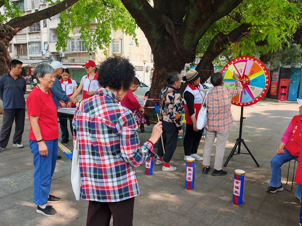 活动现场氛围热烈,工作人员设置多个功能区域,将趣味与知识融合。游戏互动区,欢乐套圈圈、趣味投壶乐、幸运大转盘三大特色游戏吸引居民踊跃参与,参与者完成游戏可参与控糖知识有奖问答,题目涵盖病因、饮食、用药等核心内容,让大家在玩乐中掌握控糖知识。