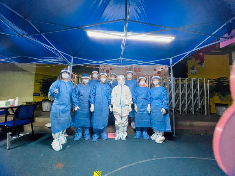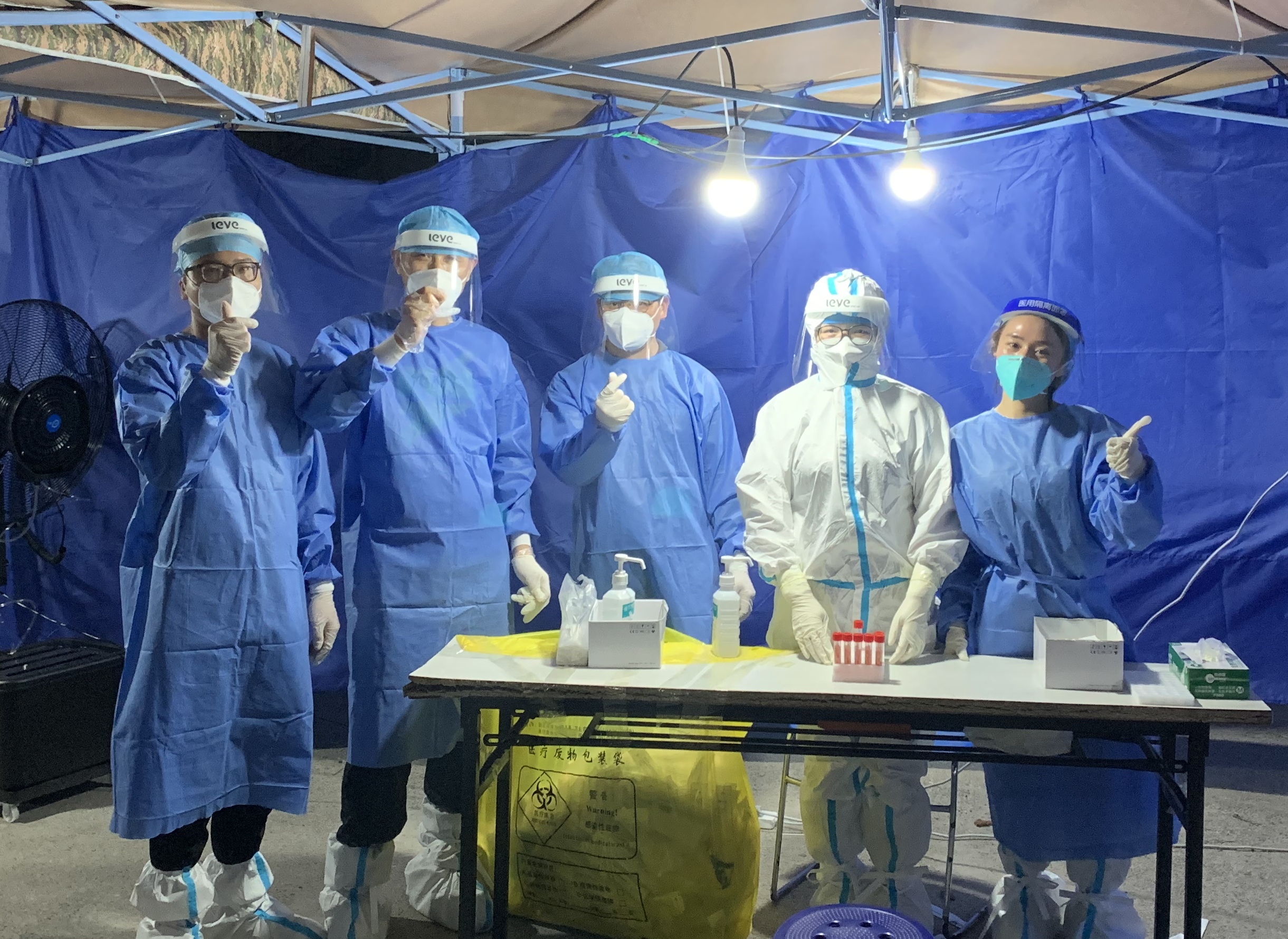 志愿者们与大白留影