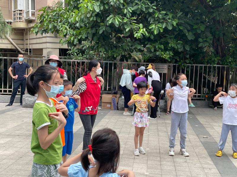 5月21日下午,儿童青少年运动在新谊社区的小公园拉开帷幕啦!运动会开始前,刘社工带着小朋友们在做热身运动,转转手、耸耸肩、压压腿……小朋友都热情高涨地跟着刘社工做,一幅幅可爱画面呈现在运动会现场,一点都不逊于真正的运动员们。