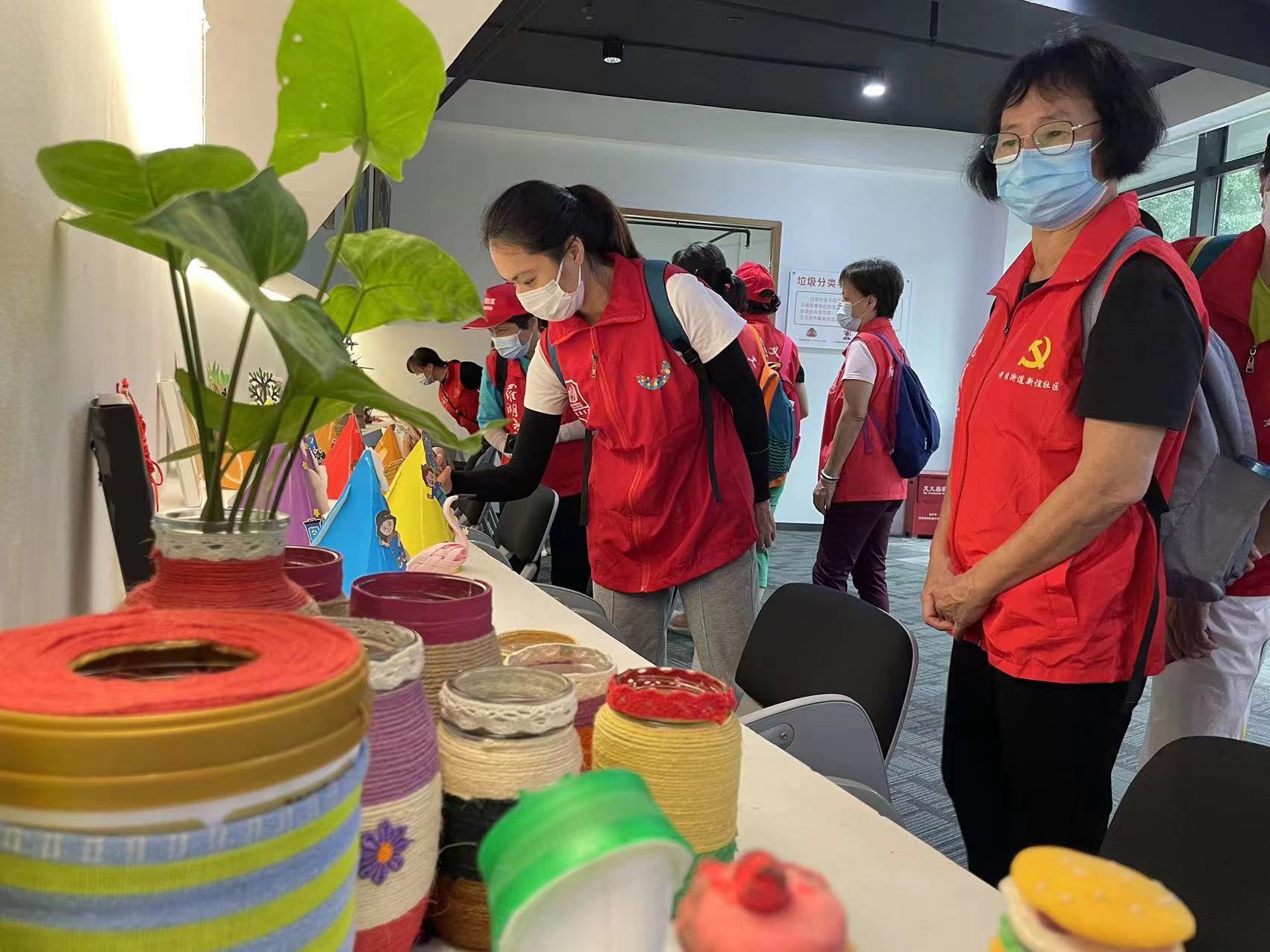 【新谊社区新时代文明实践站】志愿者们欣赏再利用创作的作品 ——“繁花五月,共启绿色之旅”志愿者团建活动