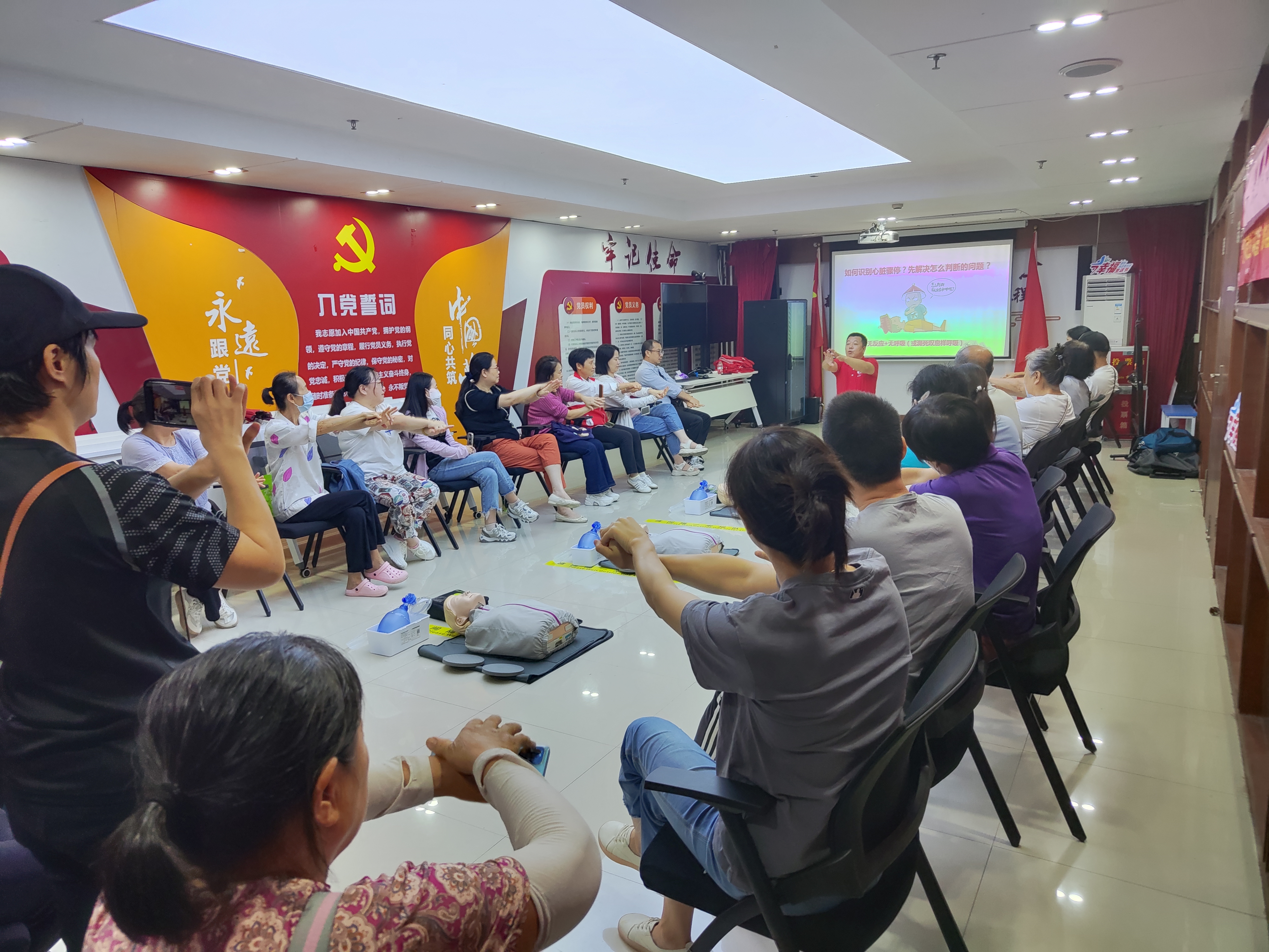 示范正确的急救动作 ——“关爱生命 ‘救’在身边”志愿者急救知识技能培训