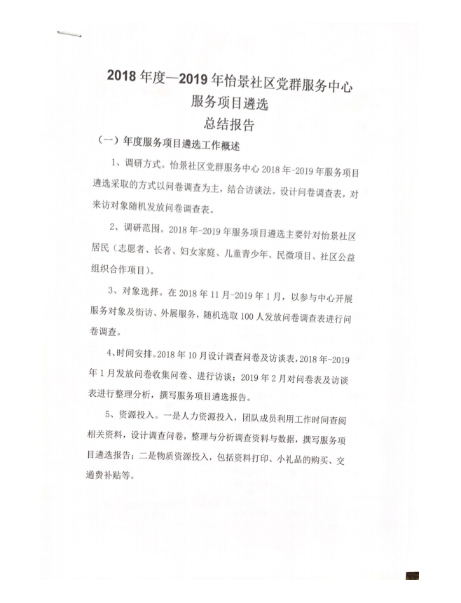 2019年怡景社区党群服务中心服务项目遴选结果公示