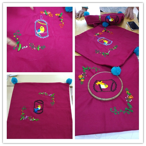 今天是台风天气,上课前下着好大的雨,怡景社区的居民学习热情一点不受台风暴雨影响,照样和往常一样课堂上座无虚席,30位居民全部到齐,怡景社区居民对居家绣娘活动的学习热情真的非常赞,上节课的抱枕套在老师的指导下,居民们掌握了方法后回家绣的非常不错,颜色搭配也做的很好。
