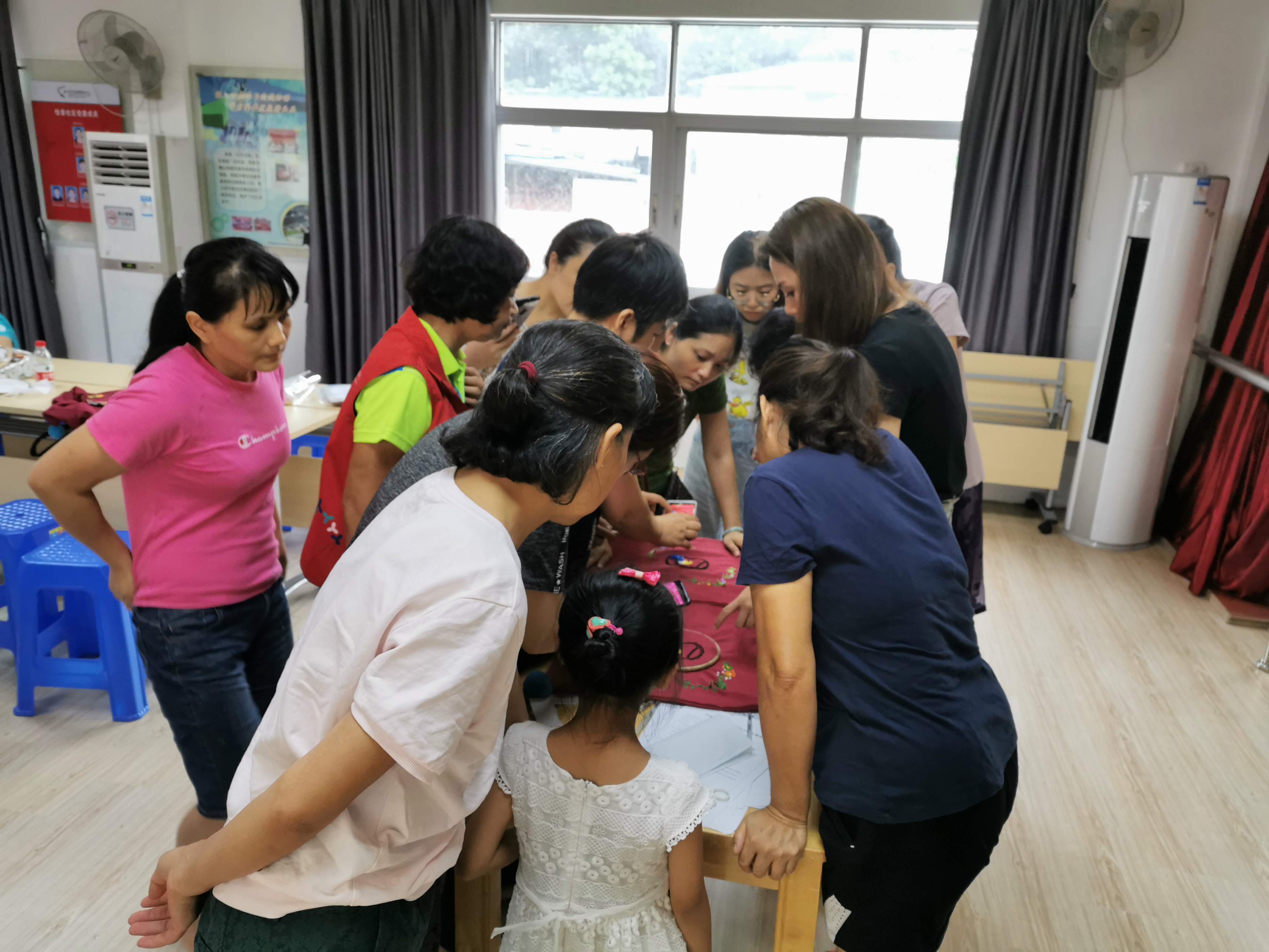 这节课老师又教授新的内容——胸针制作,居民们把老师团团围住,老师耐心的指导和示范,大家开始一针一线的绣起了胸针。