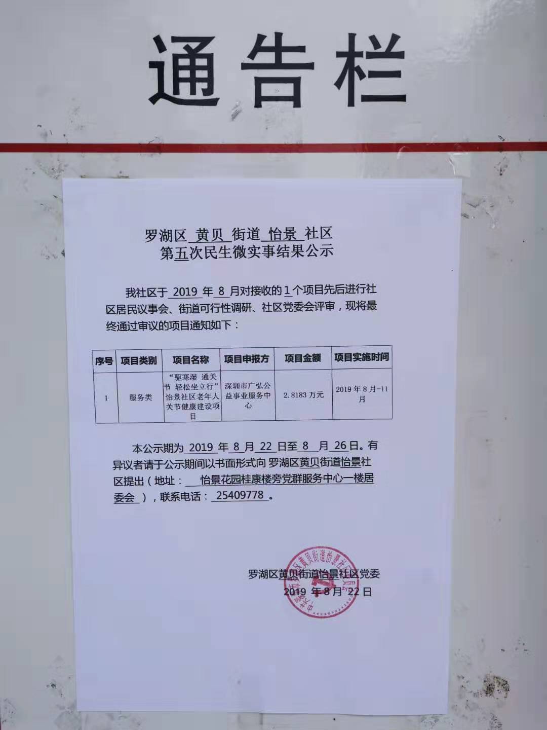 罗湖区黄贝 街道 怡景 社区第五次民生微实事结果公示