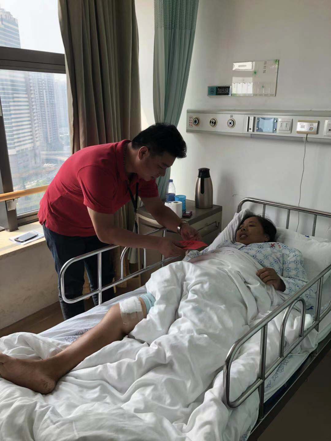 2019年9月29日上午,怡景社区党委、怡景社区景贝南业委会、景贝南小区管理处,今天去医院探望清洁工阿姨病情情况,把大家的一份份爱心转给她,祝她早日康复。