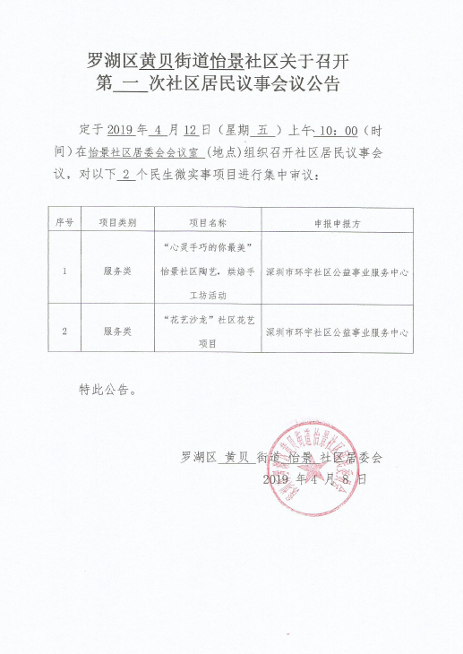怡景社区关于召开第 一 次社区居民议事会议公告