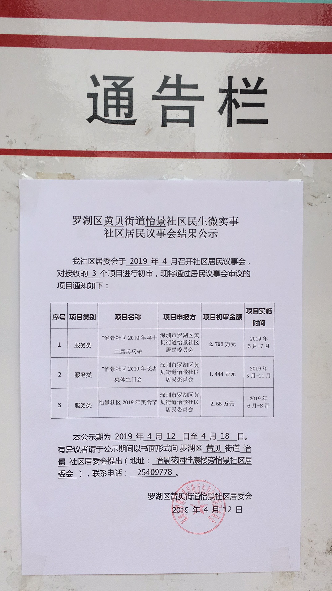 怡景社区民生微实事社区居民议事会结果公示2