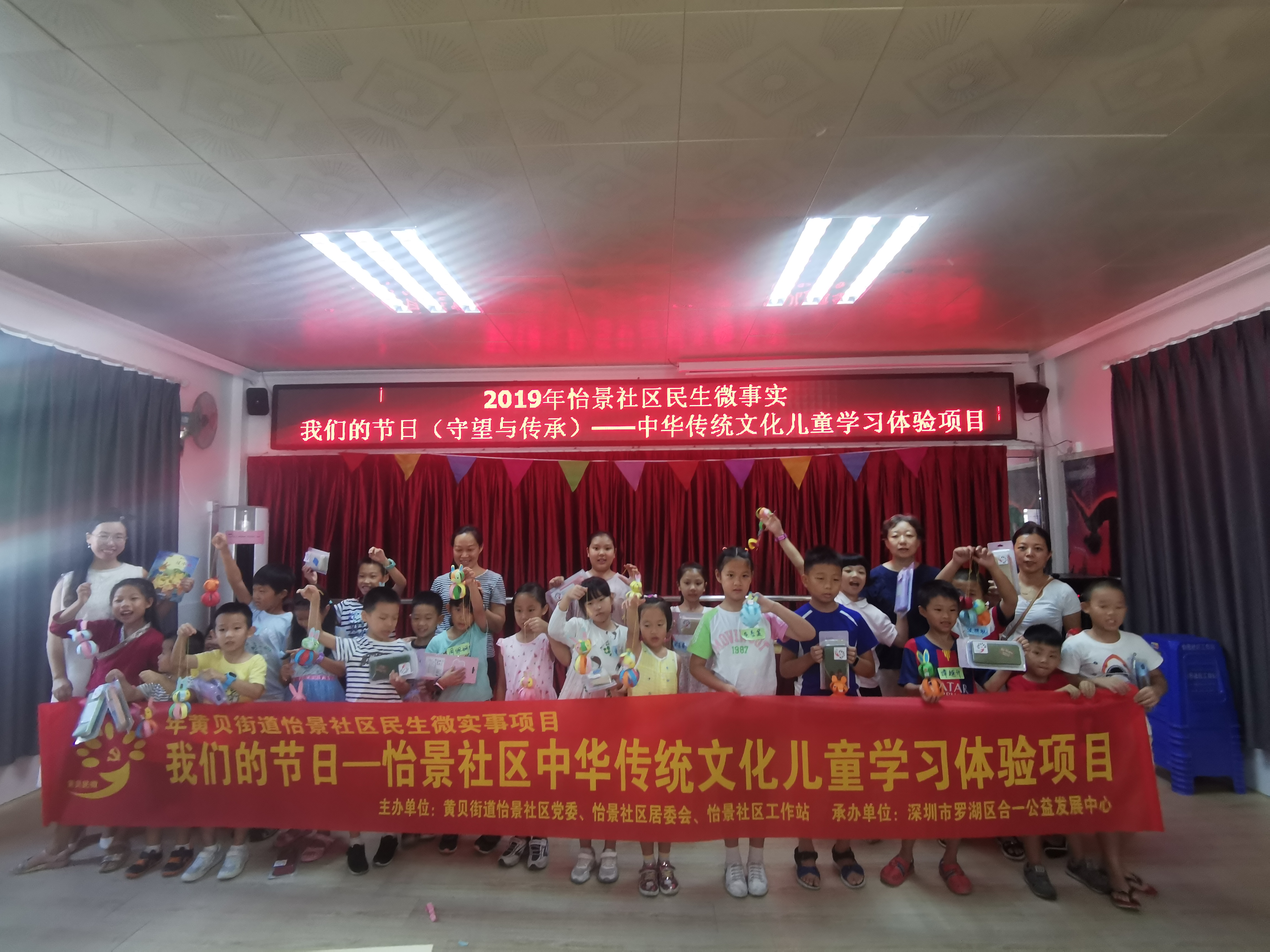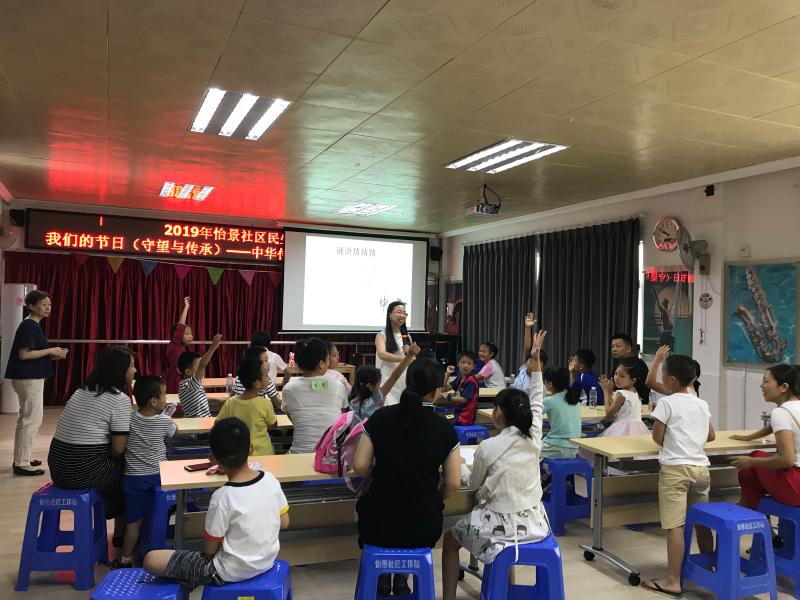 2019年9月15日上午9:30,由黄贝街道怡景社区党委,怡景社区居委会,怡景社区工作站主办,深圳市罗湖区合一公益发展中心承办的2019年罗湖区黄贝街道怡景社区民生微实事之“我们的节日”—怡景社区中华传统文化儿童学习体验项目第一场(中秋节)活动正式在怡景花园党群服务中心二楼多功能室开展。
