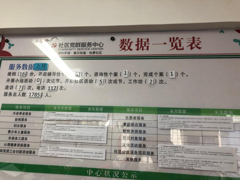 怡景社区党群服务中心9月份数据一览表