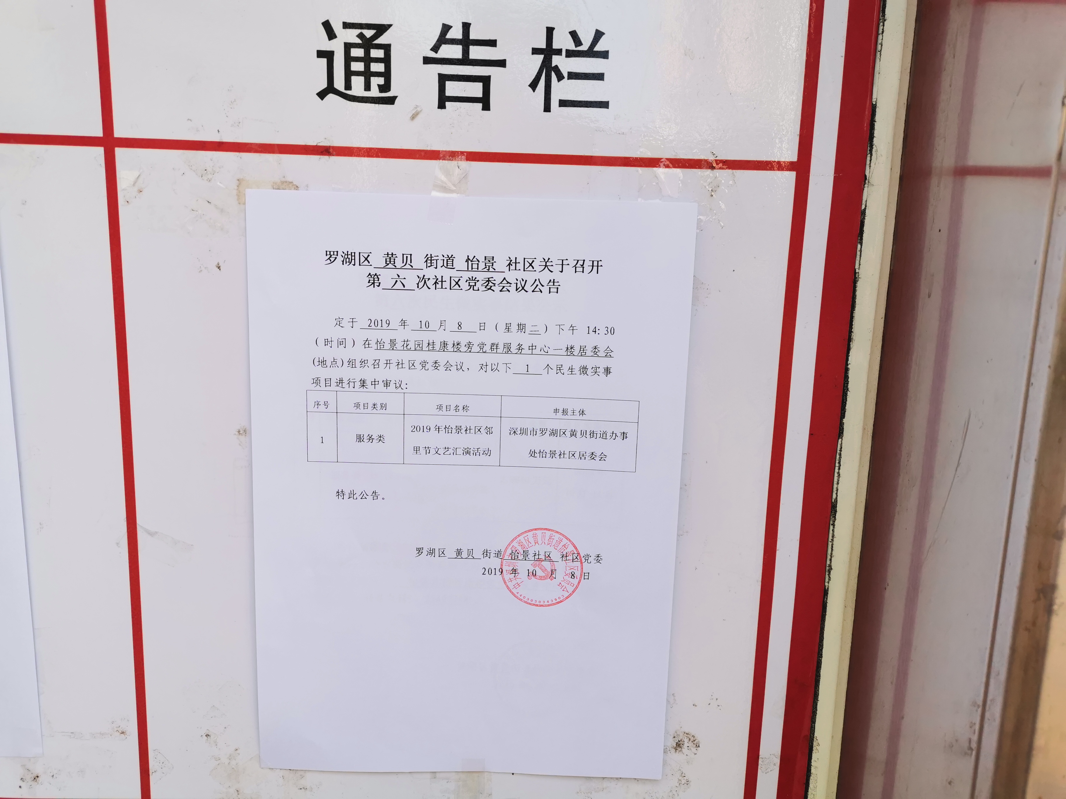罗湖区 黄贝 街道 怡景 社区关于召开第 六 次社区党委会议公告