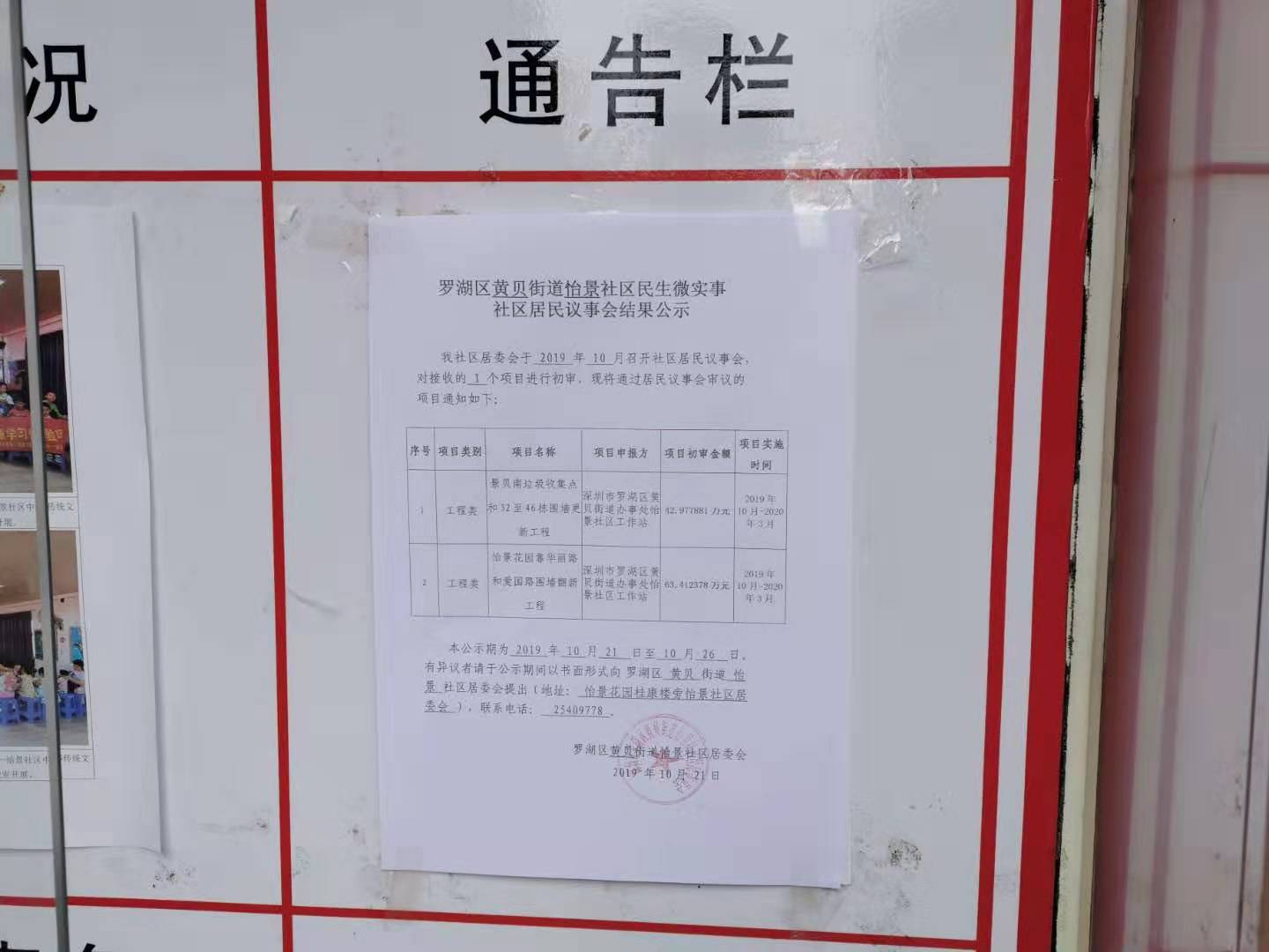 罗湖区黄贝街道怡景社区民生微实事社区居民议事会结果公示