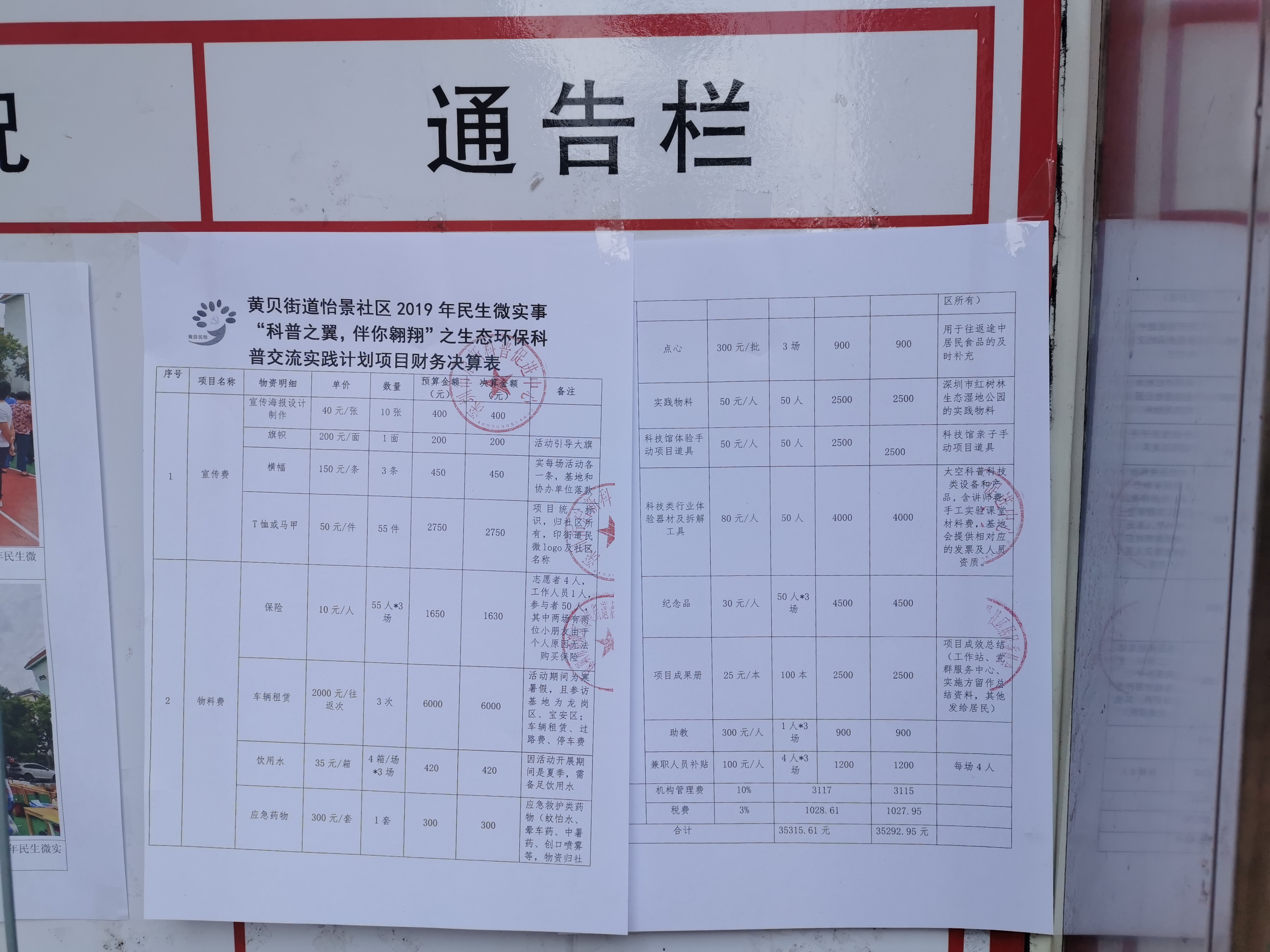 2019年怡景社区民生微实事“科普之翼,伴你翱翔”之全民科普交流实践计划财务决算公示