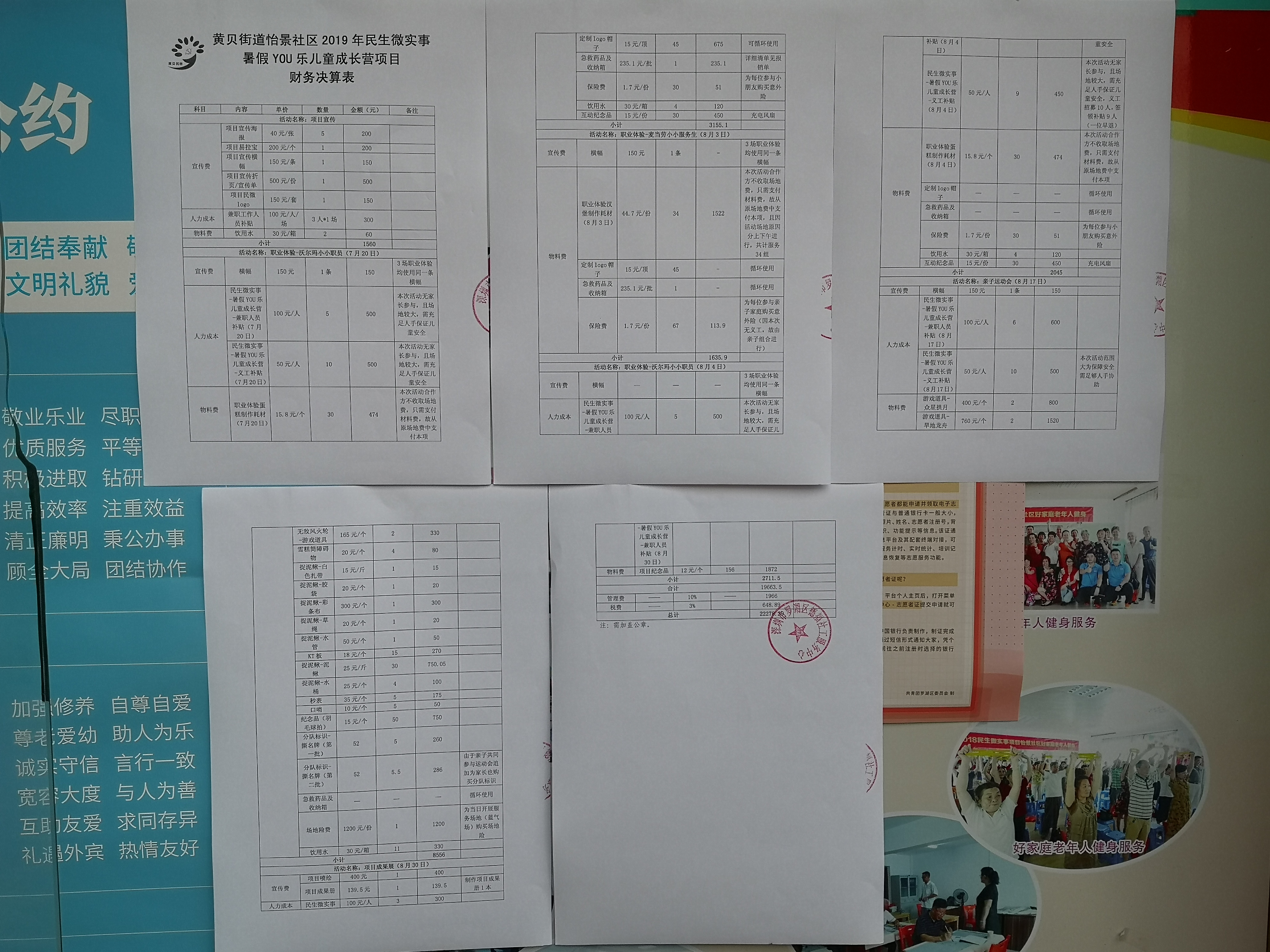 黄贝街道怡景社区2019年民生微实事暑假YOU乐儿童成长营项目财务决算表