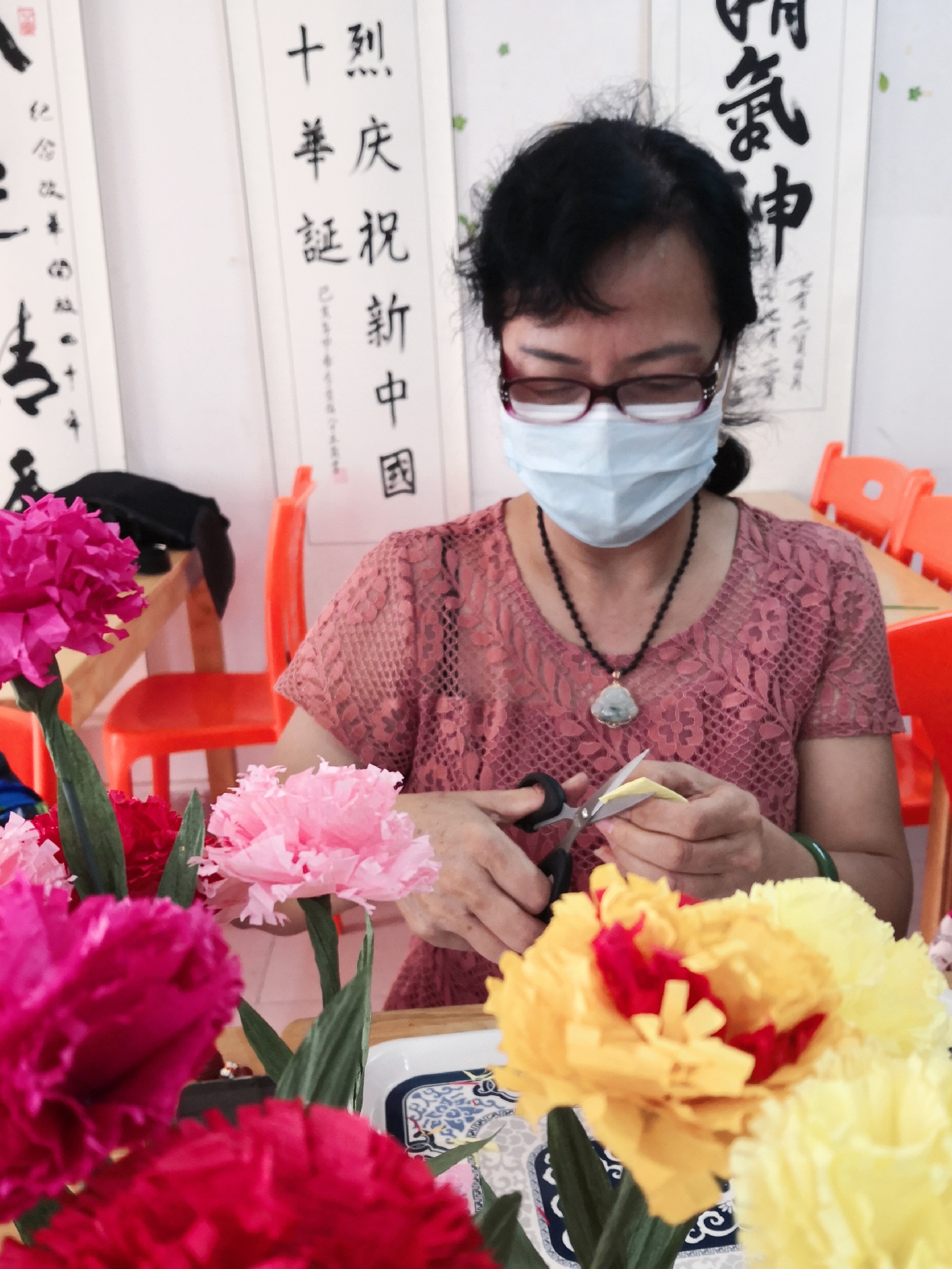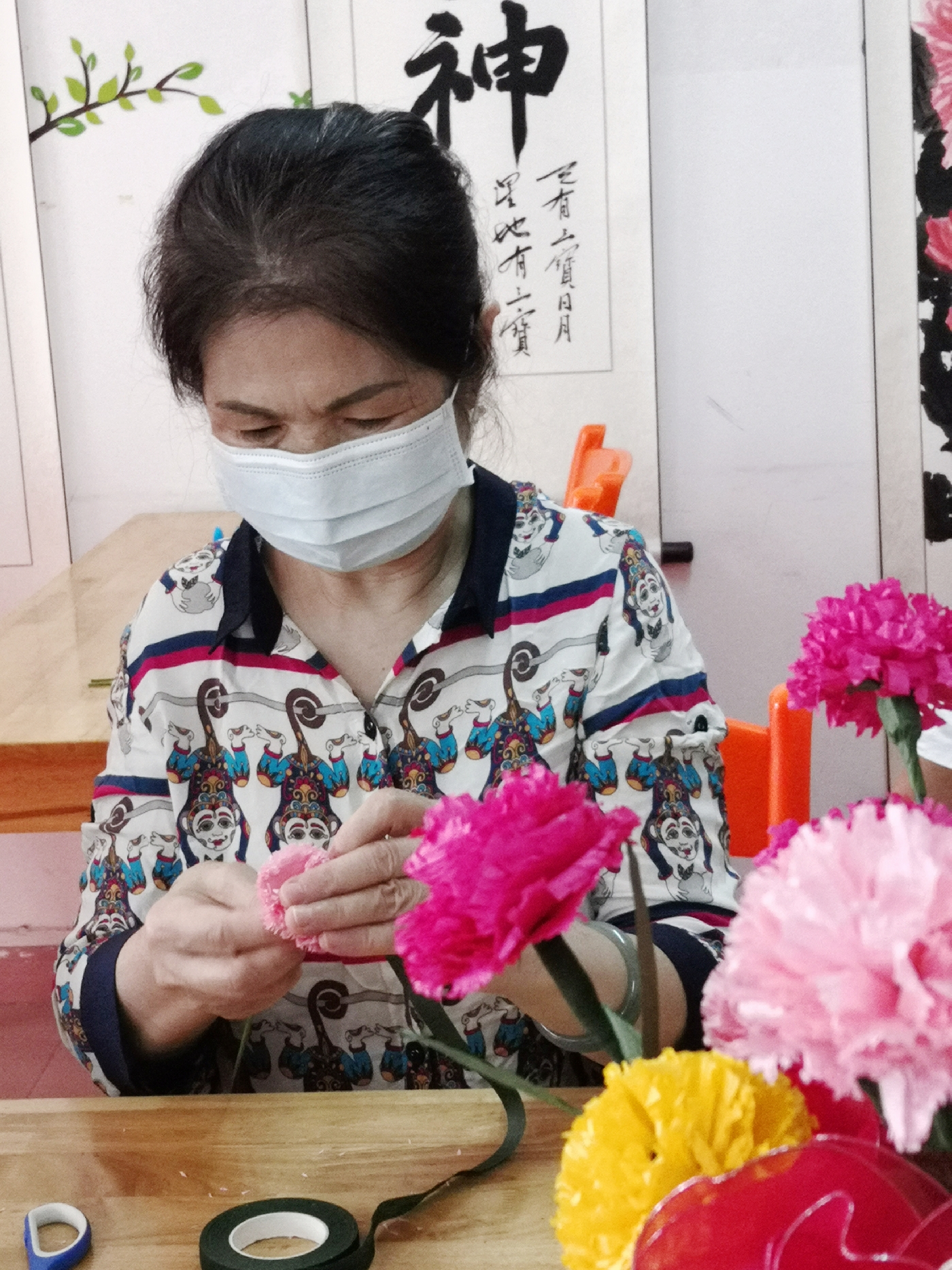 怡景社区志愿者制作手工康乃馨献给白衣天使