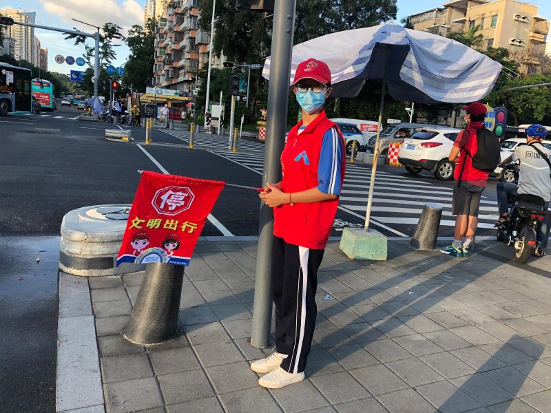 怡景社区文明路口执勤志愿者