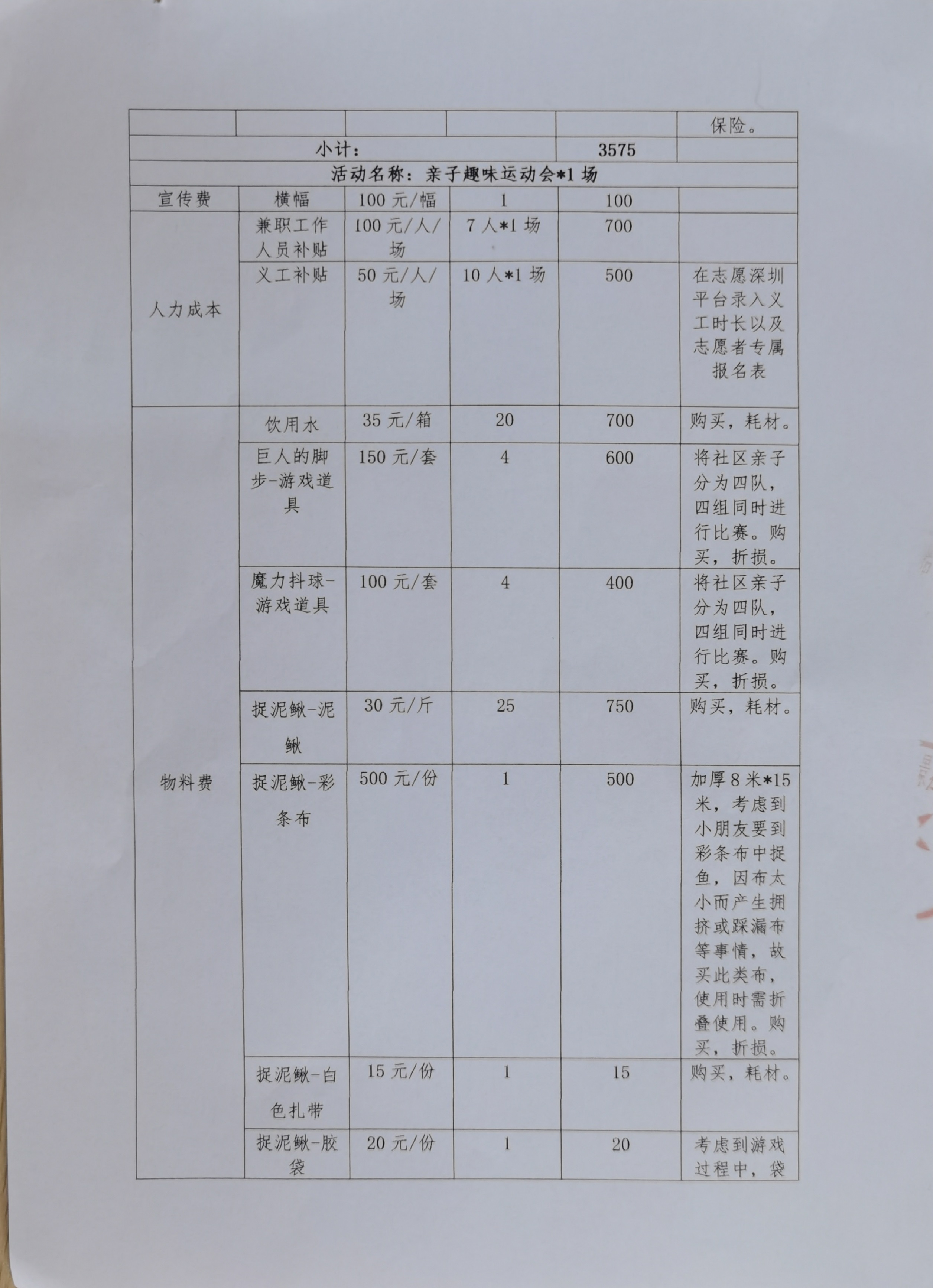 [2020民生微实事】怡景社区暑假YOU乐亲子夏令营项目预算表