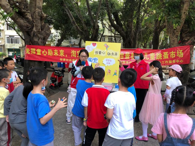 为强化社区儿童的社会交往能力,学习正确的价值观,推动友好型儿童社区的建设。4月24日,北斗机构驻怡景社区党群服务中心,在怡景社区党委的支持下本机构在景贝南小学开展第二期“党照童心助未来,淘宝共享创文明”儿童跳蚤市场活动。