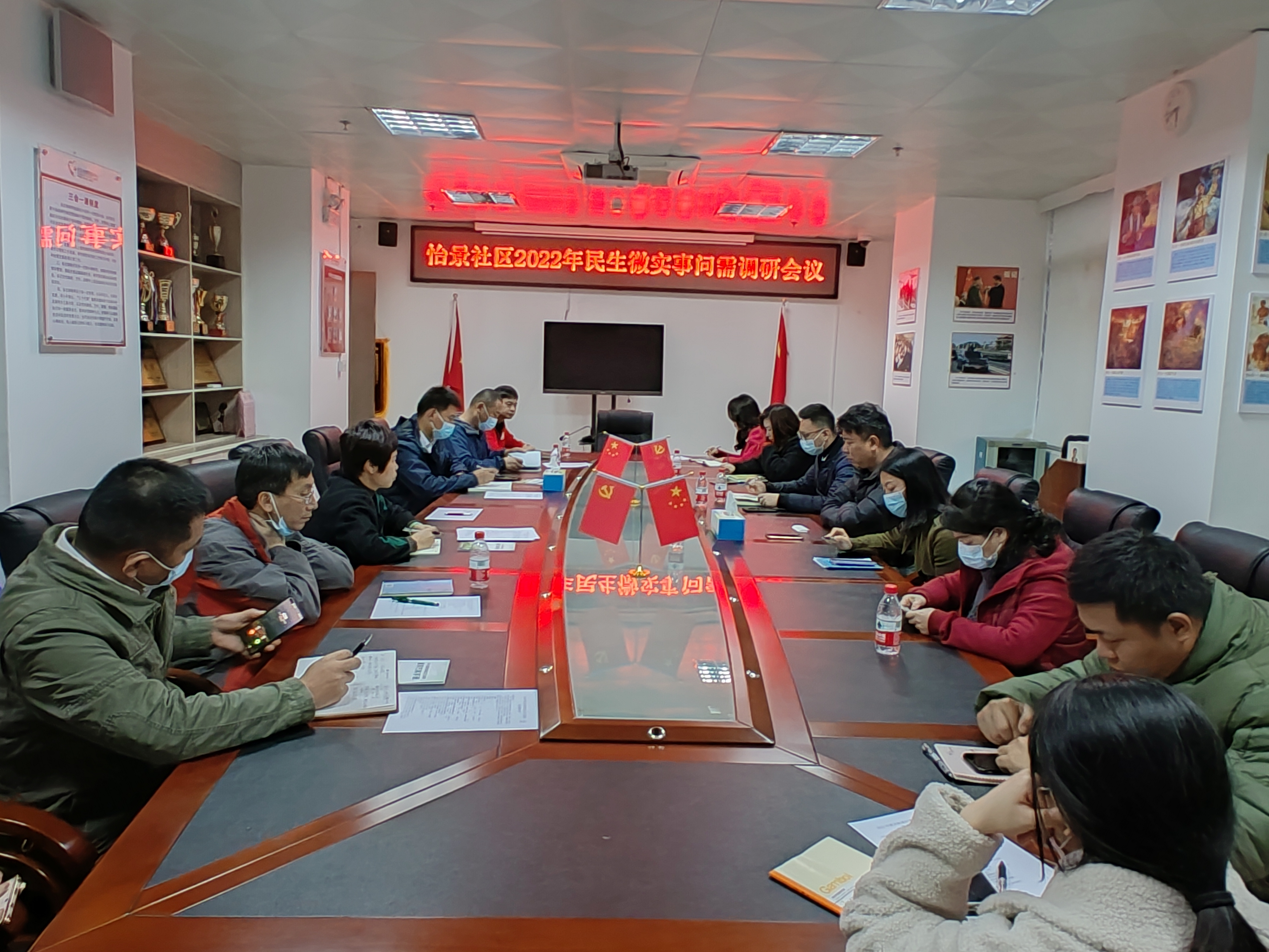 为更好开展2022年度“民生微实事”工作,在社区开展更丰富更专业更符合居民需求的民生微实事项目,2021年12月28日下午,在怡景社区工作站会议室组织召开2022年民生微实事项目问需调研会议会议。