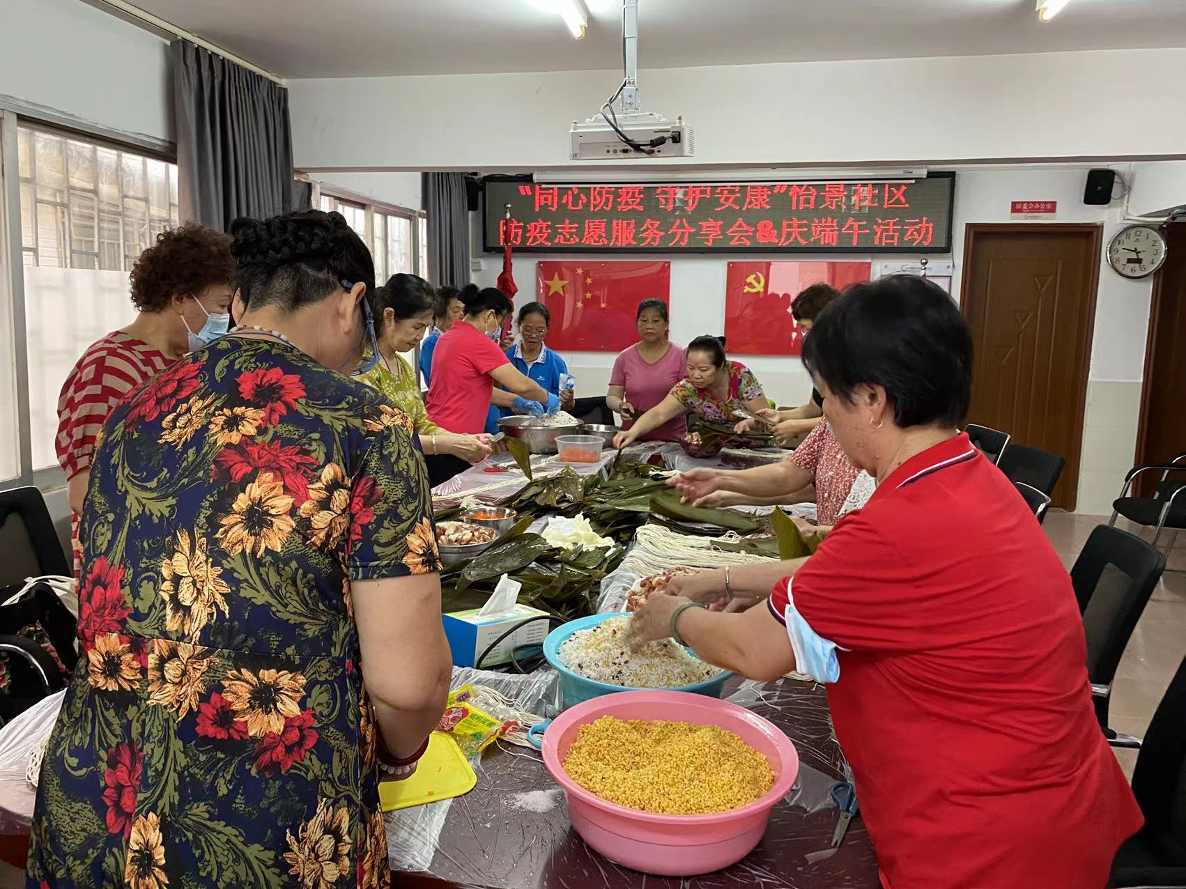 怡景社区开展“同心防疫庆端午”包粽子活动