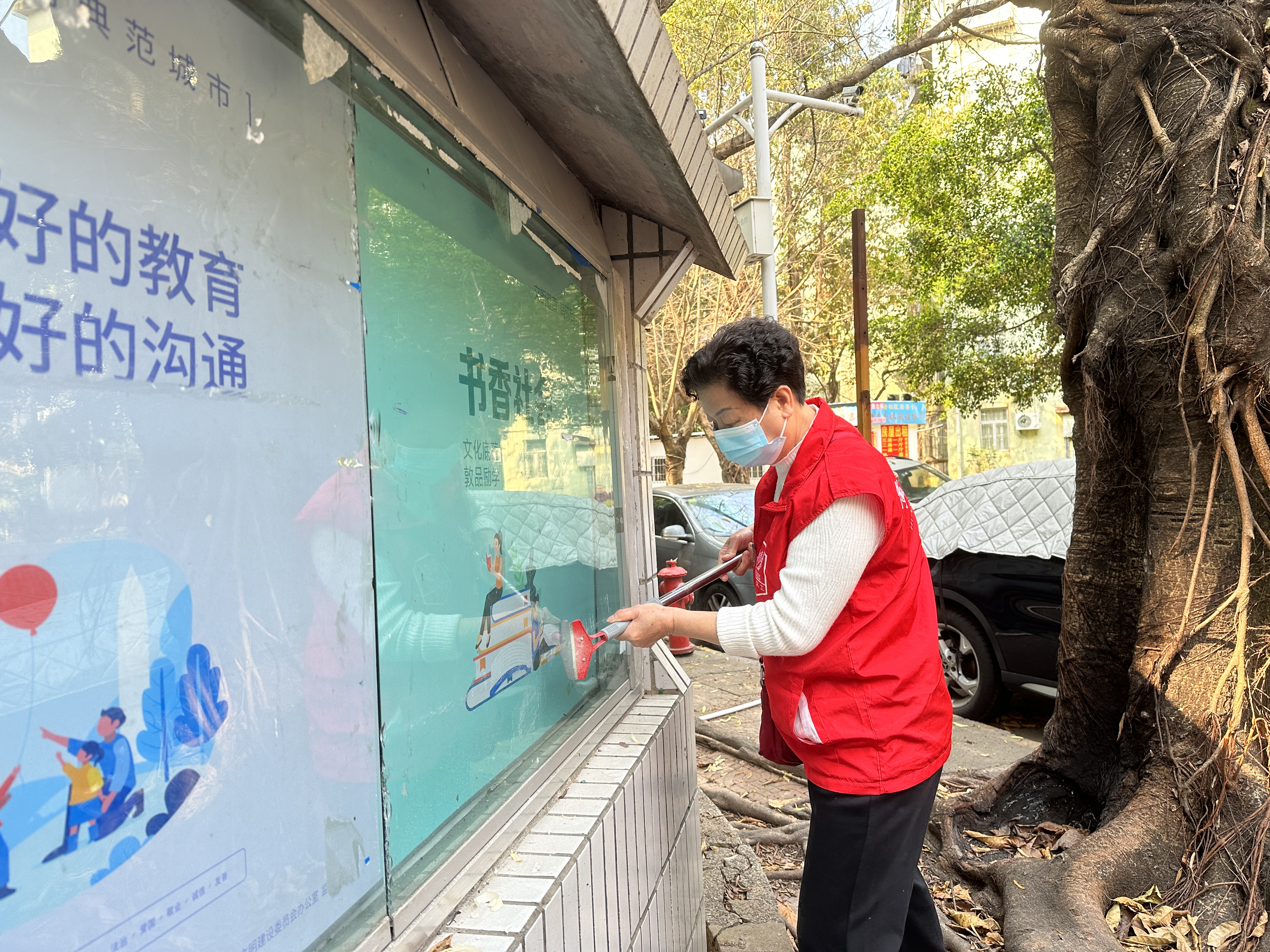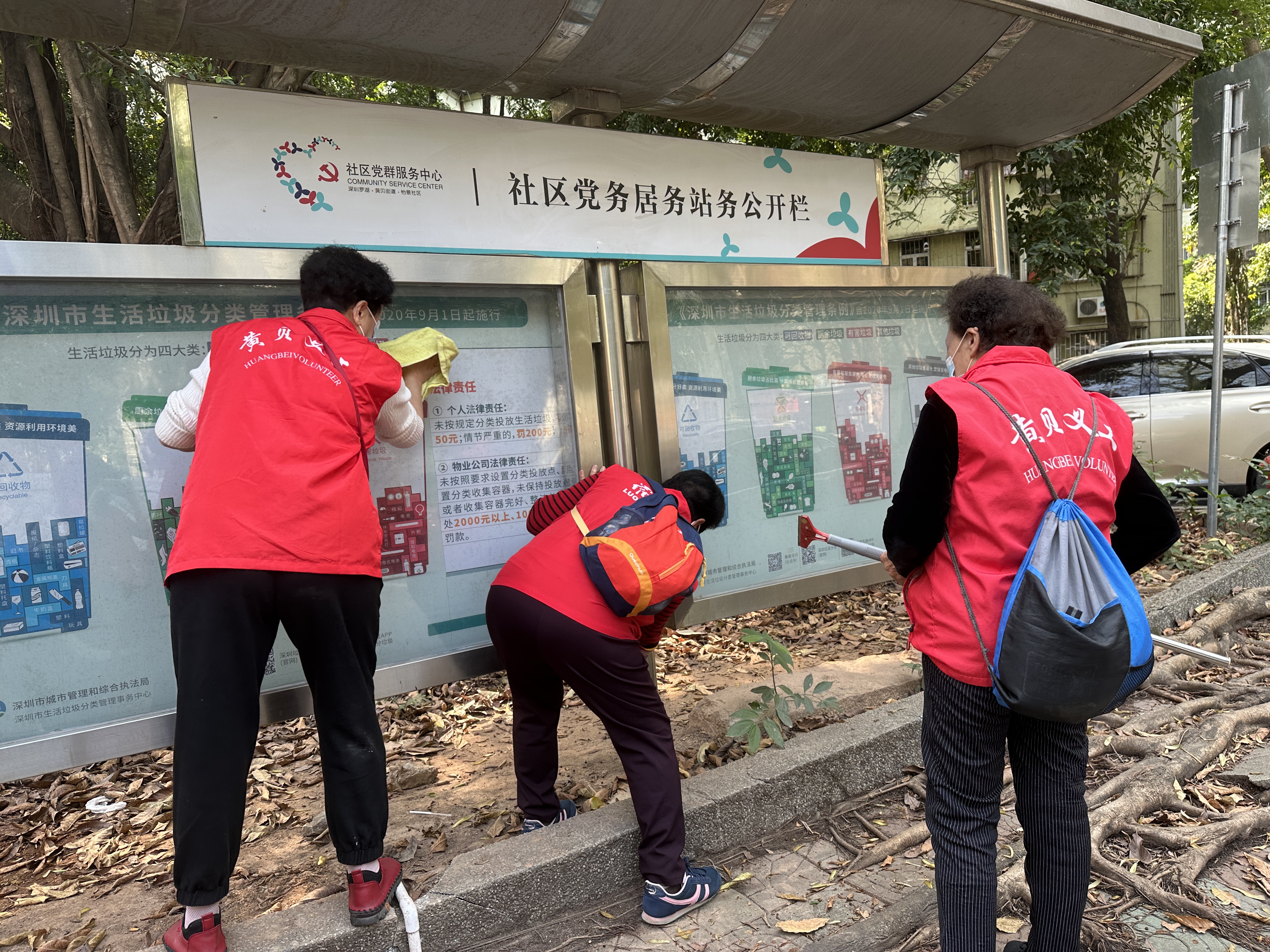 罗湖家园网讯:2023年2月24日,怡景社区党委、怡景社区党群服务中心组织社区志愿者开展“学史力行 美丽家园”活动。志愿者们积极参与,拿着抹布和铲子仔细认真清理街道上公益宣传栏的灰尘和残余胶布,志愿者们用行动为居民营造了干净、整洁、舒适的生活环境,为创建全国文明城市添砖加瓦。
