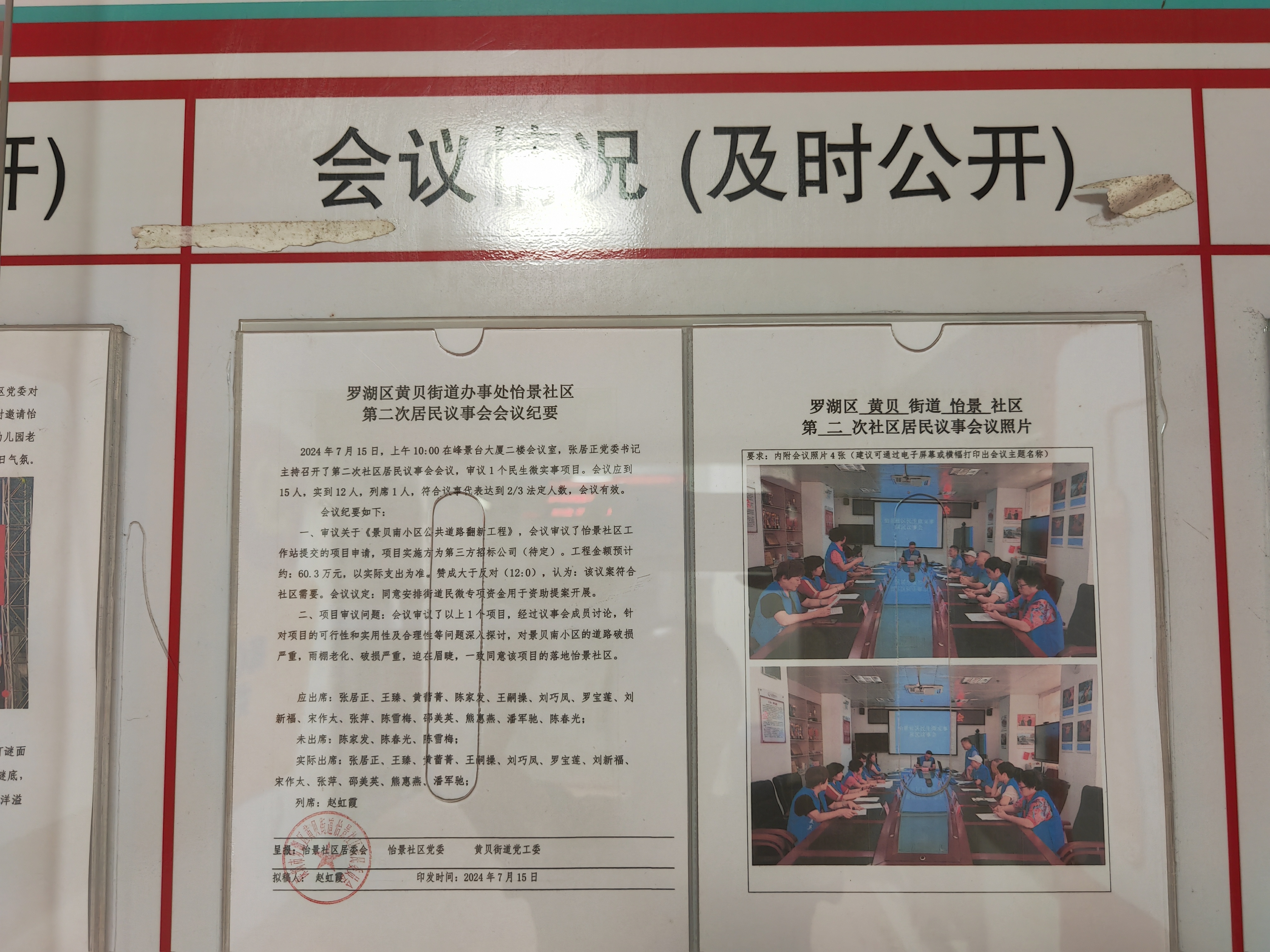 罗湖区黄贝街道办事处怡景社区第二次居民议事会会议纪要(宣传栏照片)