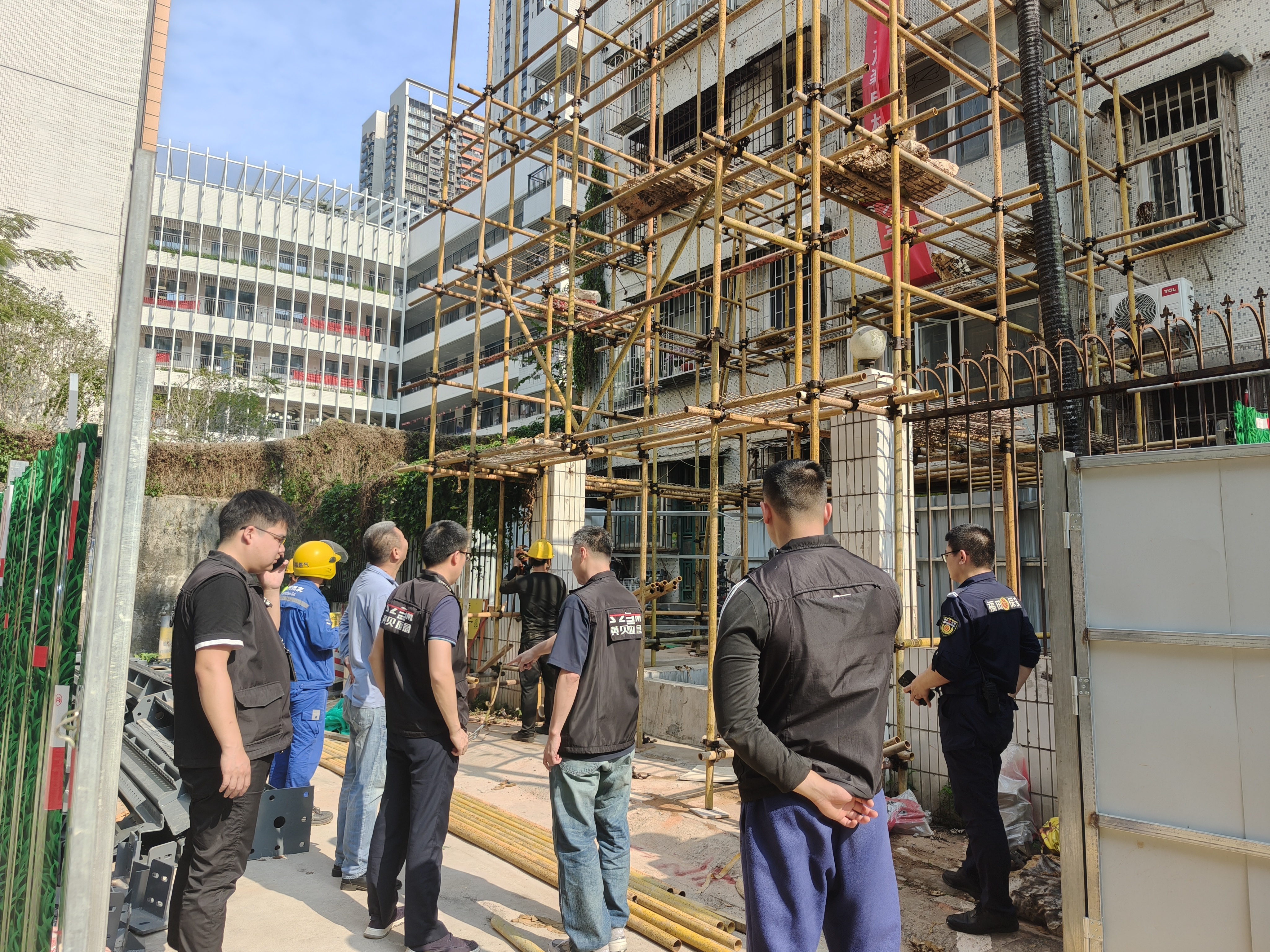 罗湖家园网讯:2025年4月10日下午,景贝南小区47栋电梯加装工程现场高空作业没系安全带等问题,责令停工,施工工人带回去社区工作站观看安全施工等教育视频并开出安全隐患告知书。