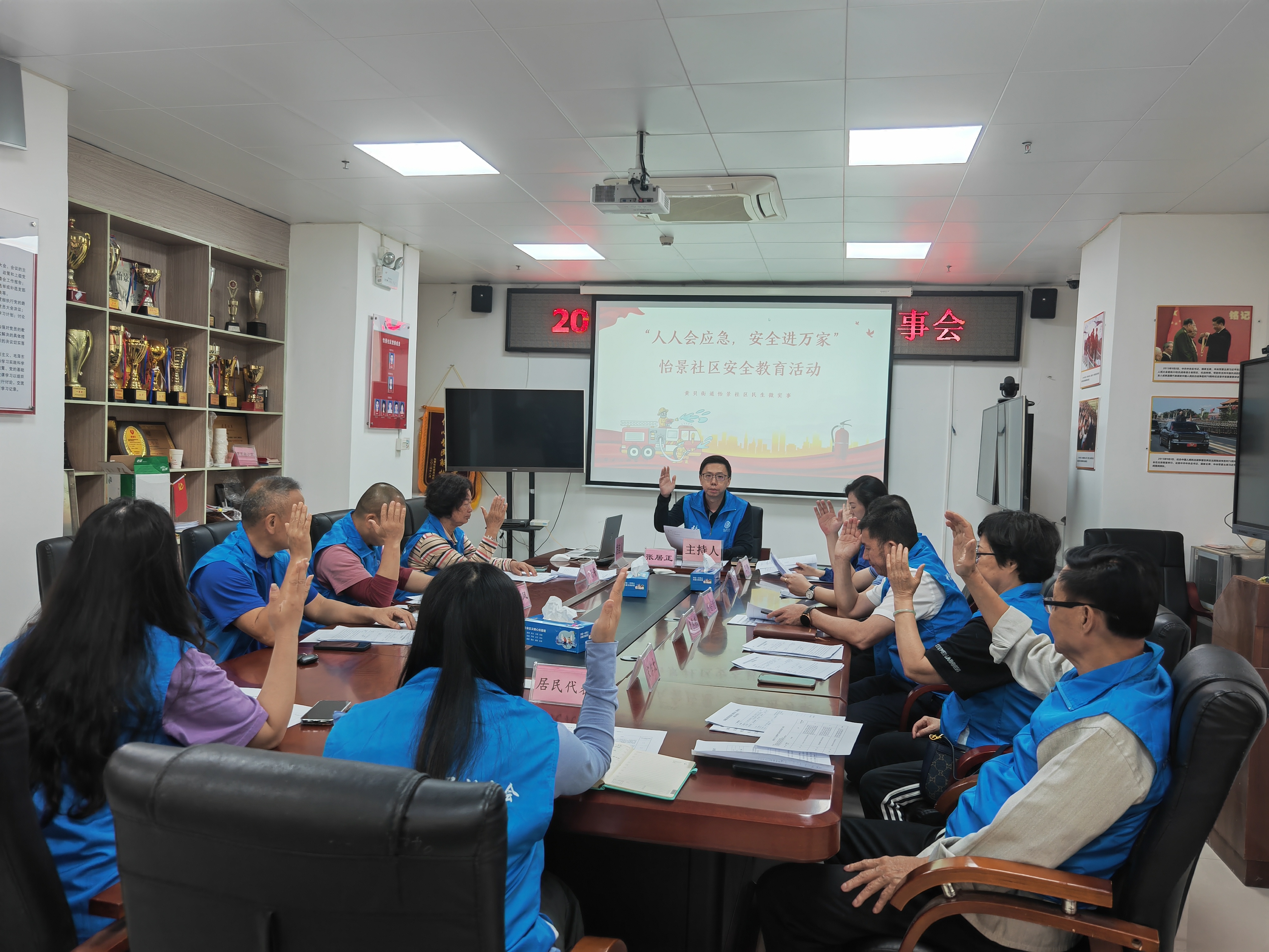 一、审议关于《“人人会应急,安全进万家”怡景社区安全教育活动动》,会议审议了怡景社区工作站提交的项目申请。赞成大于反对(11:0),认为:该议案符合社区需要。会议议定:同意安排街道民微专项资金用于资助提案开展。