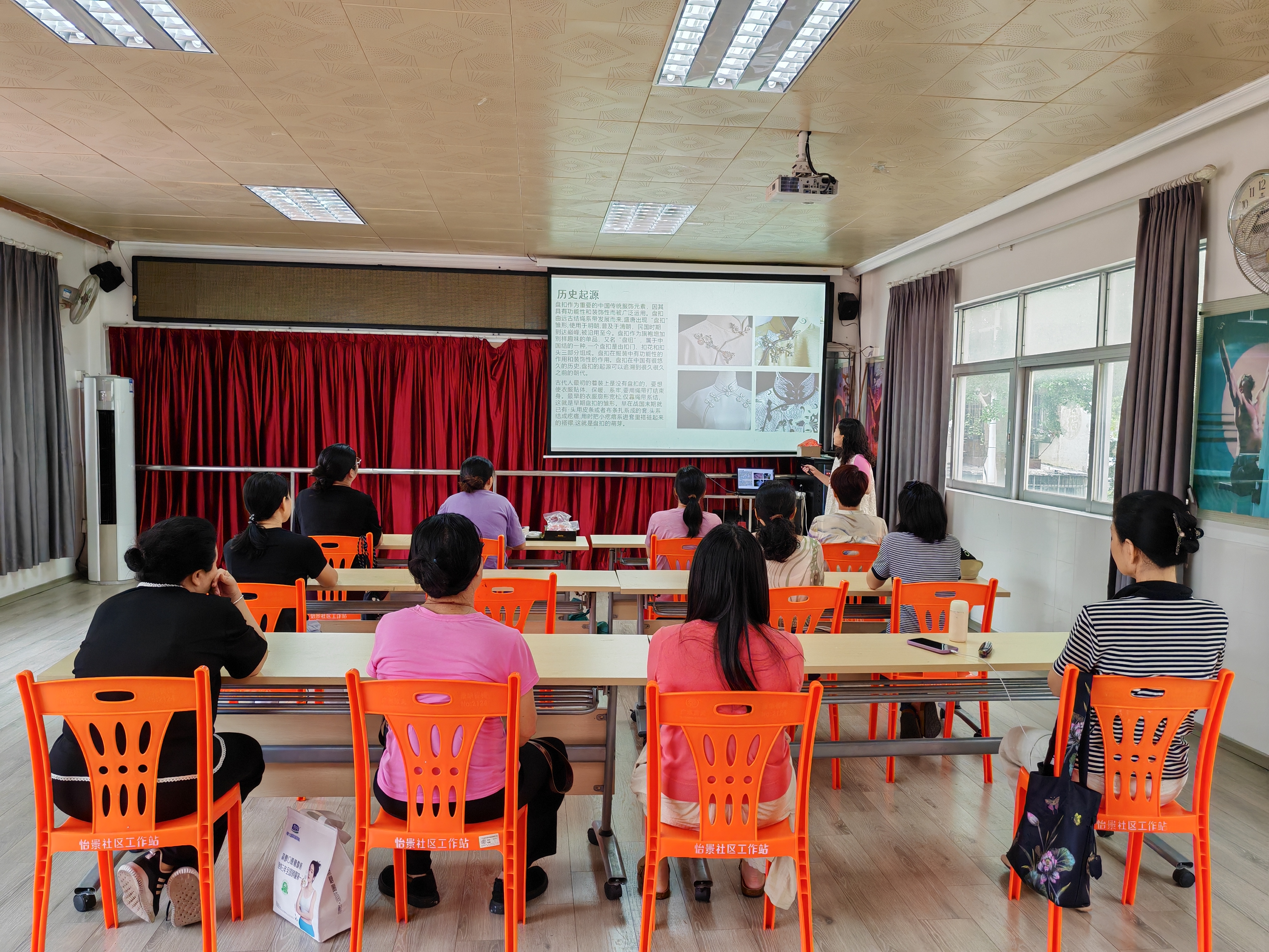 为深入贯彻落实党的二十大精神,传承中华优秀传统文化。5月9日,在怡景社区党委的引领下,怡景社区党群服务中心联动辖区多元化社会运营资源——怡宝未来星项目开展全职妈妈非遗手工技能提升系列课程第2场,本次主题是“指尖上的手作时光——非遗传承手工”,共吸引15名全职妈妈参与。