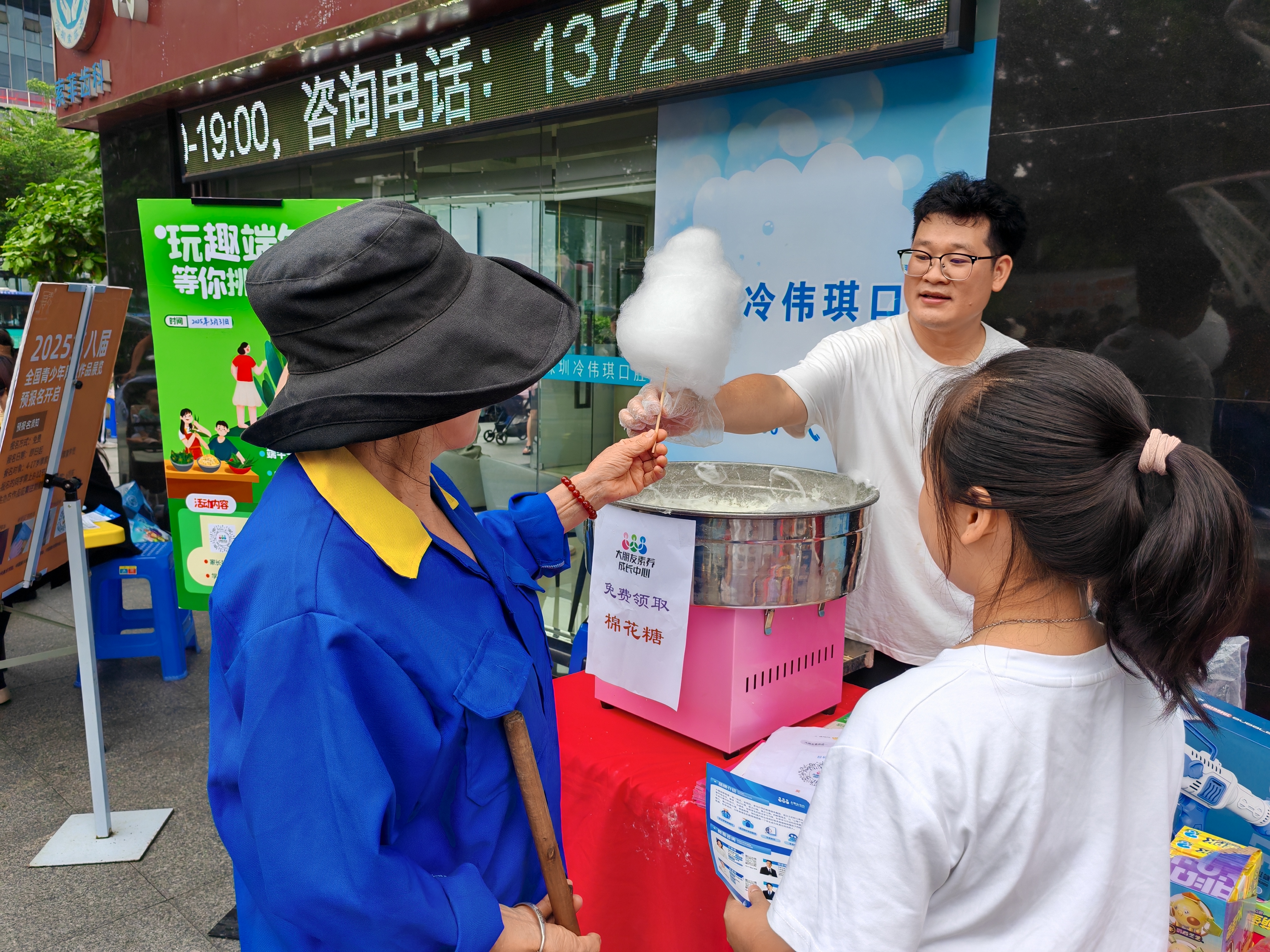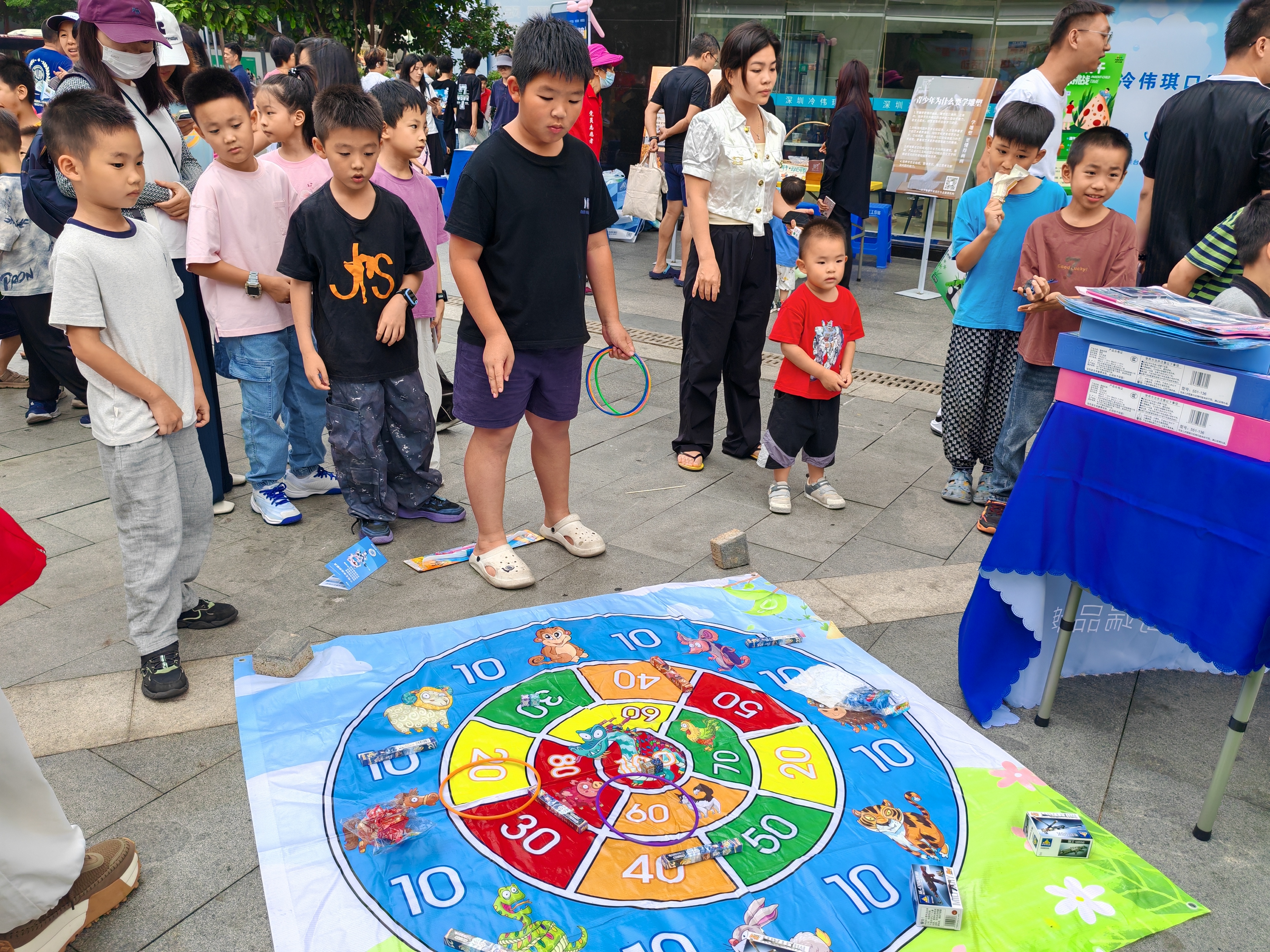 企业服务宣传区更是热闹非凡,深远提供政企惠民宣传服务(国补活动宣传、牛奶品尝、免费贴膜等);怡宝未来星准备了扭扭棒粽子制作;智慧少年宫(罗湖宫)现场制作小狗气球,通过互动问答为孩子们送上小礼品;厚素艺舍的“醒狮动感萌粽”别具创意;小码王少年编程设置编程游戏体验,让孩子们在趣味中探索科技奥秘;大朋友教育开展英语词汇闯关。各单位的精彩互动活动,是社区党委凝聚各方力量、推动资源下沉服务居民的生动体现。