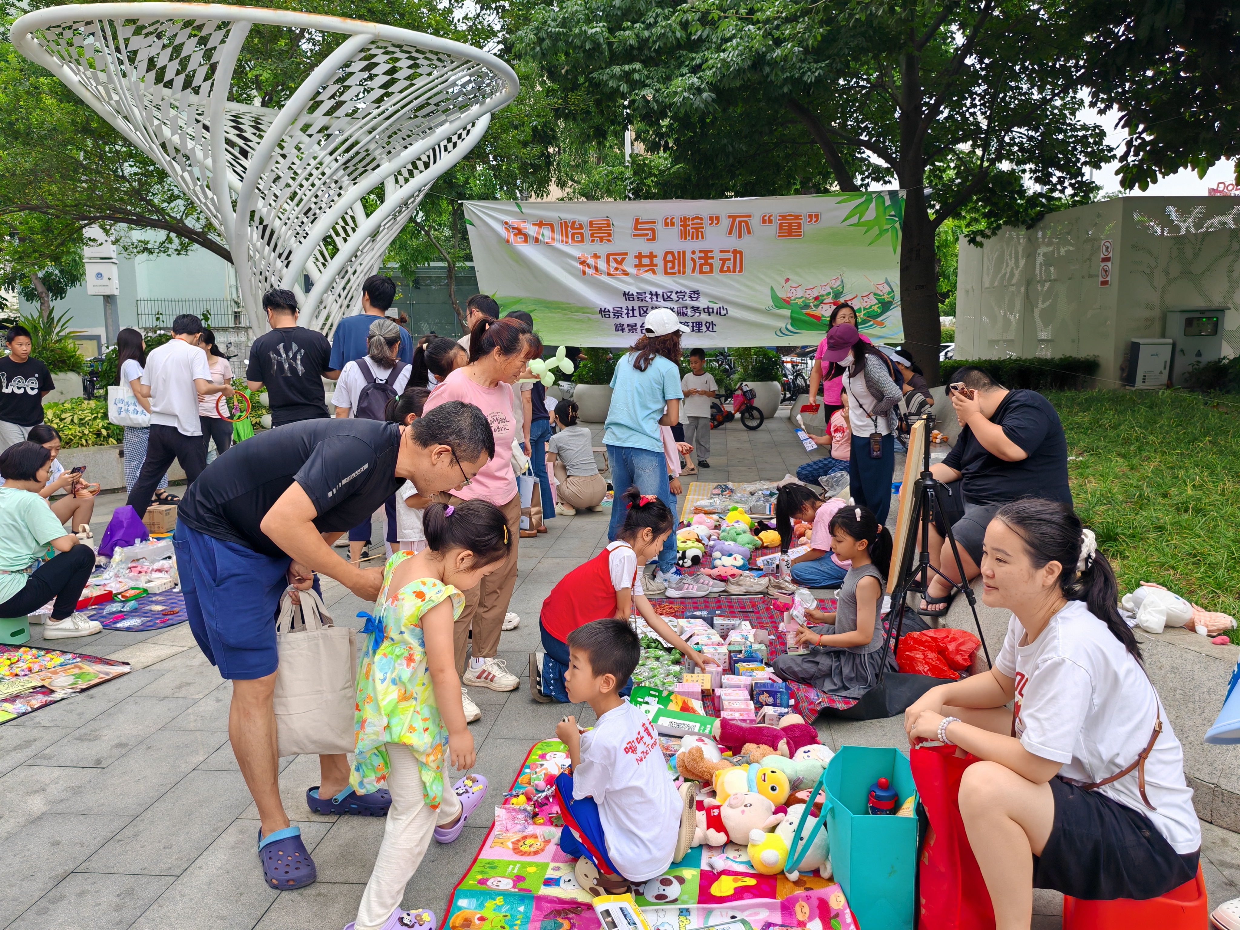 古韵端午,童趣六一。5月31日,怡景社区党委举办的“活力怡景 与‘粽’不‘童’社区共创活动”在峰景台街心公园开展,此次活动怡景社区联合深圳市深远贸易有限公司、怡宝未来星、中国人寿、小码王少年编程、大朋友教育、厚素艺舍等12家商企共建单位开展。