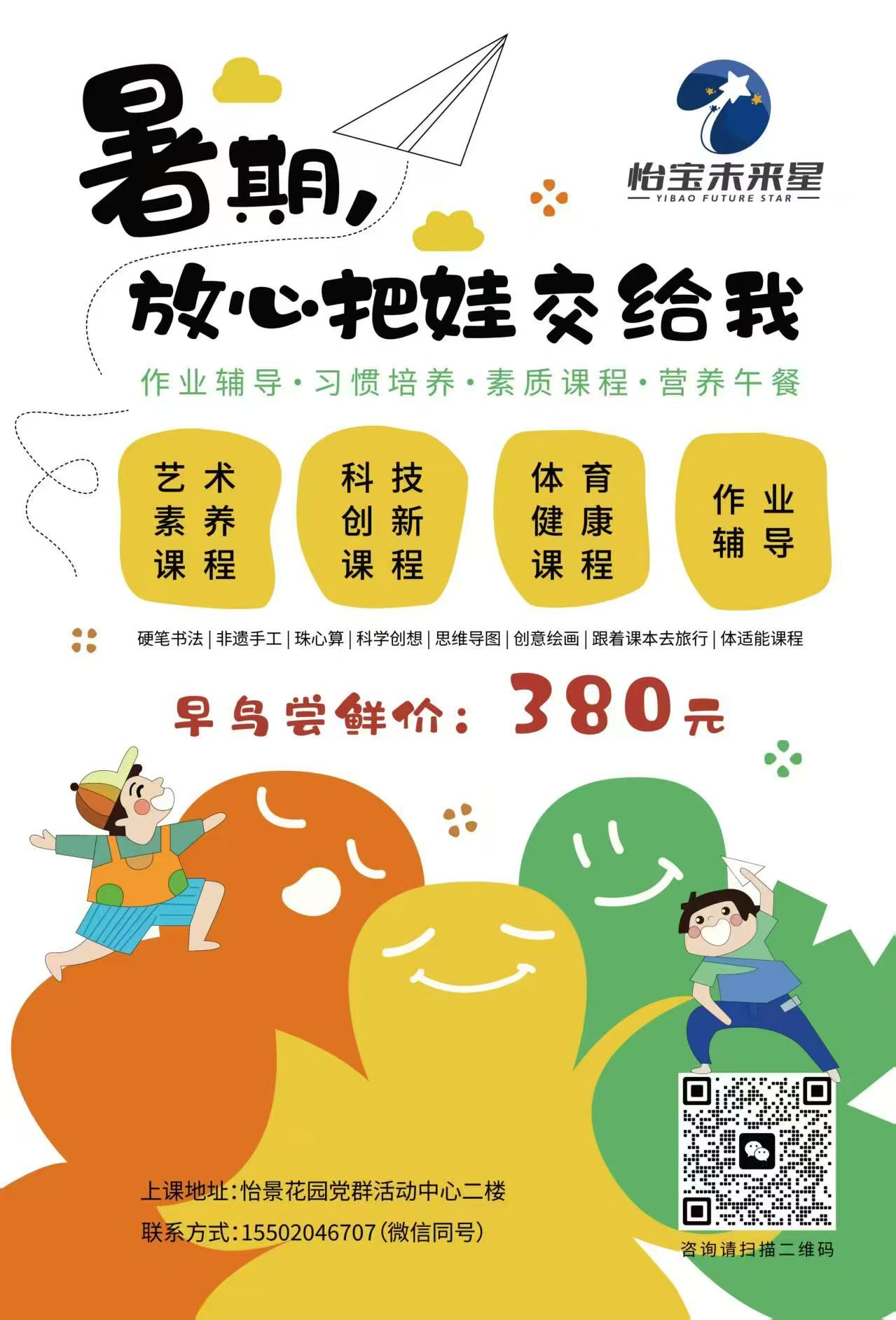 第二期也要开始招生啦!家长们看过来👀!暑假无人带娃、作业没人管?别焦虑!怡宝未来星托管班一站式解决!