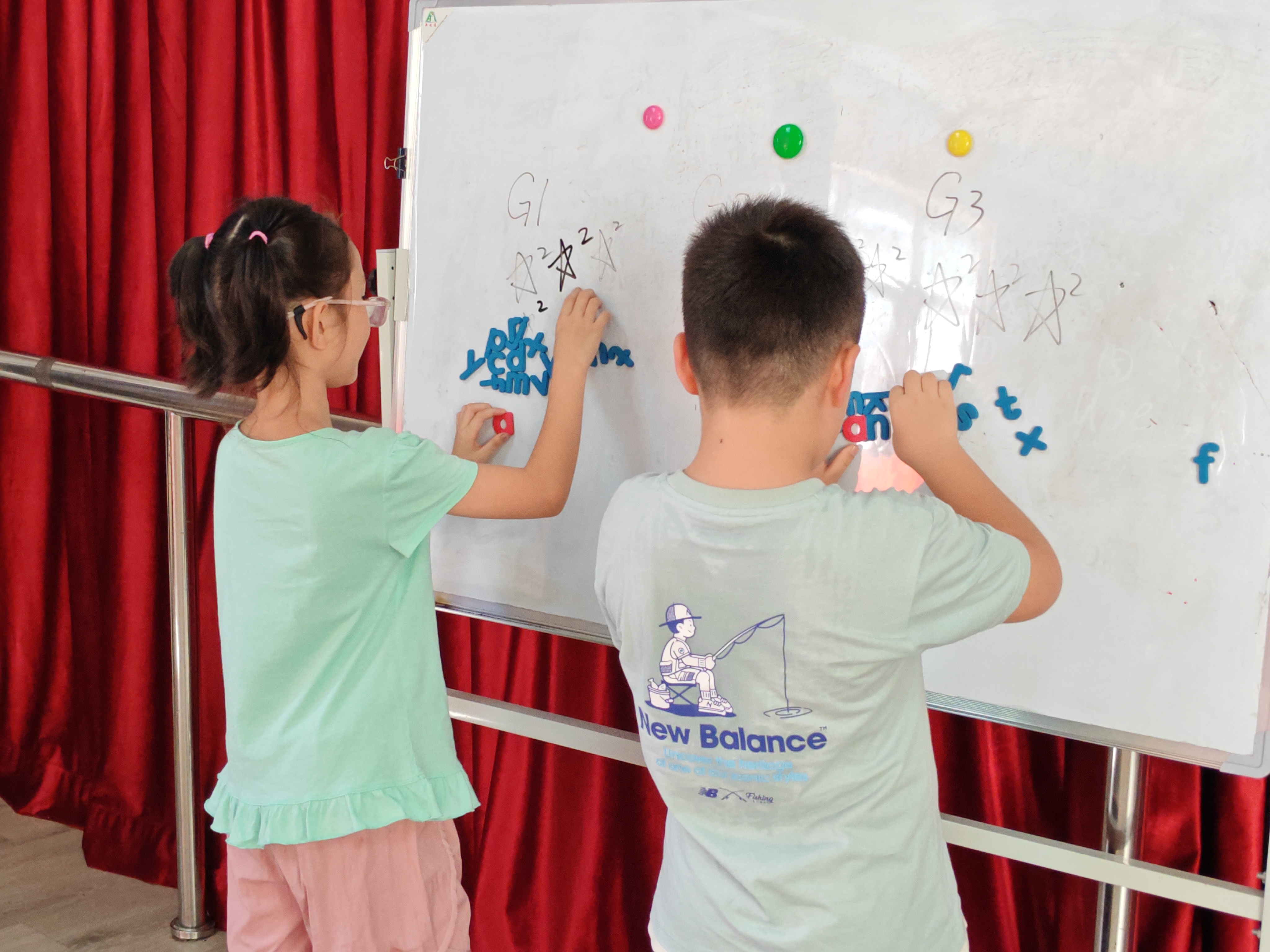 小组中期,孩子们通过“认识身体部位”“找朋友”“小球运动单词”等游戏拓展词汇量,强化口语表达,让孩子在玩中学,熟练拼读、听写单词和故事阅读。最后两节,主要聚焦复习与成果展示,孩子们通过“跳格子读单词”巩固知识,“狼人杀、拼写单词”带来趣味挑战。最后,舞台展示则成为孩子们的“高光时刻”。他们自信拼读、流畅讲述故事,将短元音a相关知识灵活运用。孩子们将通过自己的努力赚取的积分券兑换自己心仪的礼品,并取得了本次小组的结业证书。孩子们表示:“英语其实没有那么难,我敢大声地开口说英语啦!”