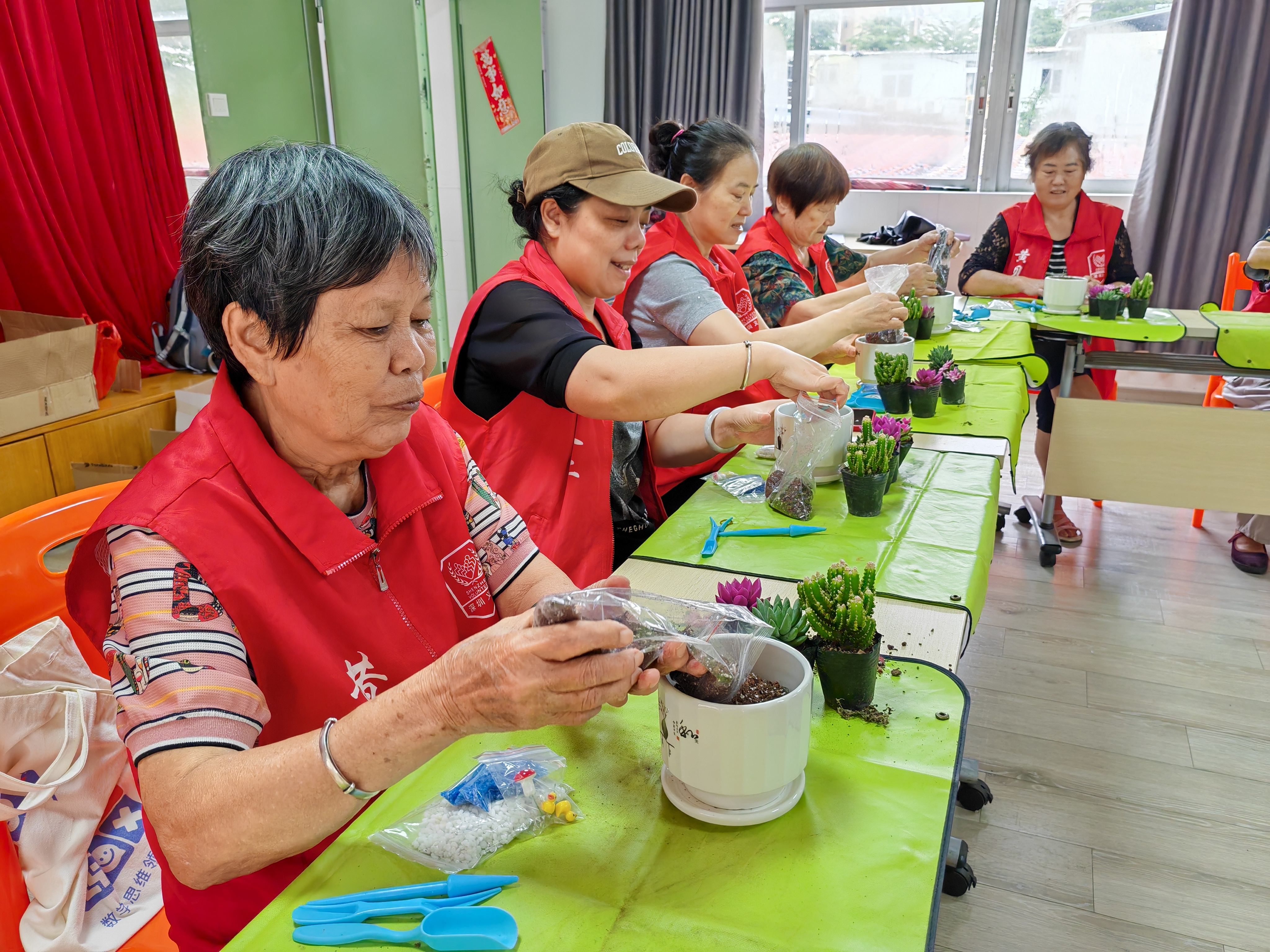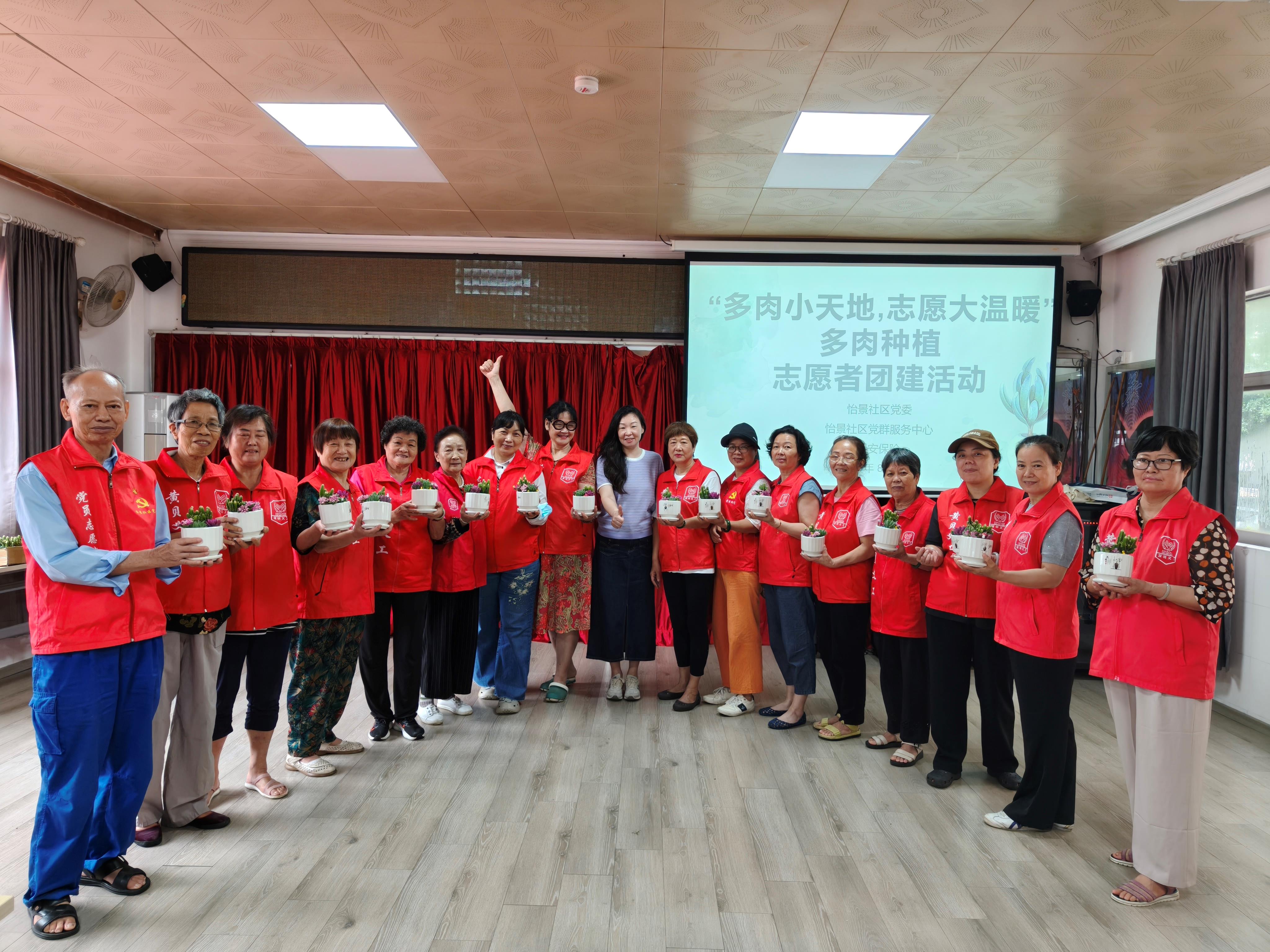 为进一步增强社区志愿者的凝聚力,促进社区新老志愿者沟通和交流,营造积极向上、团结互助的社区志愿服务氛围。8月19日下午,在怡景社区党委的指导下,新现代驻怡景社区党群服务中心社工联合平安保险开展“多肉小天地,志愿大温暖”多肉种植志愿者团建活动,共吸引20名志愿者参与。