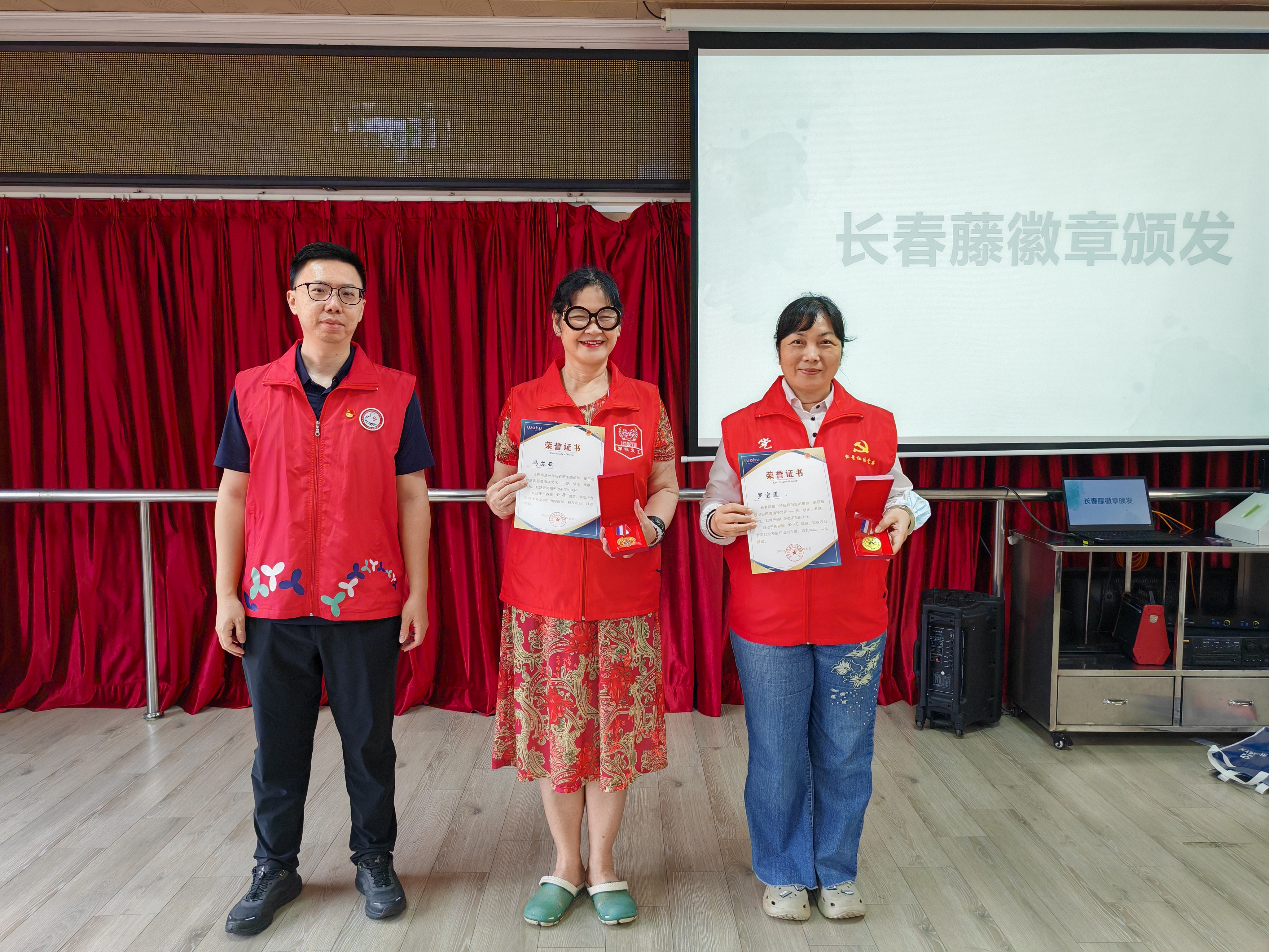 活动伊始,社区党委书记为荣获罗湖区“长春藤徽章”的8名志愿者颁发纪念徽章及荣誉证书,并对他们的辛勤付出和卓越贡献给予了高度评价和衷心感谢,同时激励在场其他志愿者以他们为榜样,积极投身志愿服务事业,争取来年也能获得属于自己的“长春藤徽章”。
