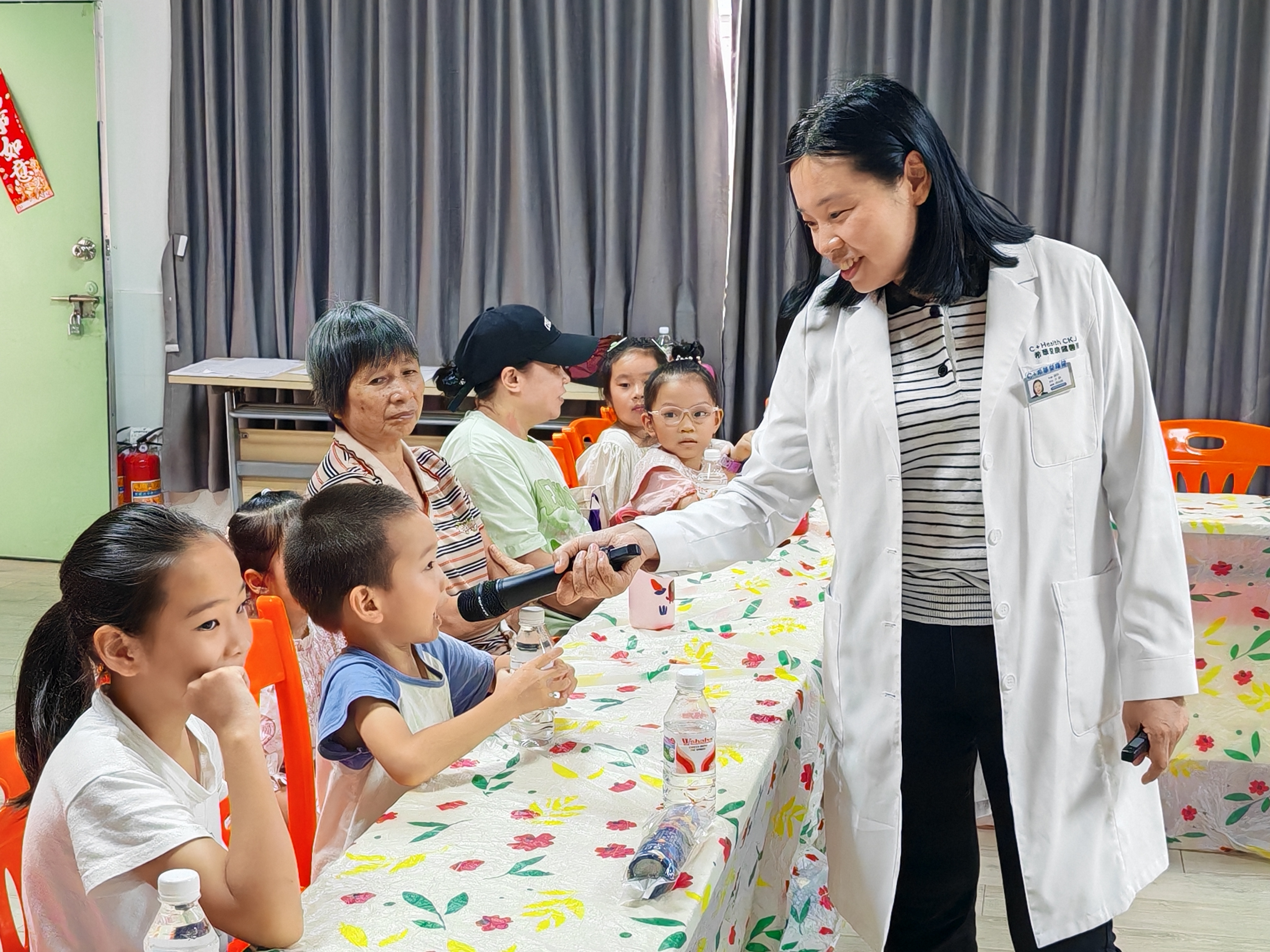 活动现场,社工与孩子们趣味互动,挑战健康视力表,在欢声笑语中把护眼意识 “种” 进孩子们心里。紧接着,眼科医生亓静围绕儿童近视防控为亲子展开科普,从近视成因、发展危害到日常预防举措,结合案例与数据,直观讲解“儿童近视防控小妙招”。为进一步加深孩子们的知识记忆,亓医生开启有奖问答环节,围绕刚了解的护眼常识出题,孩子们踊跃抢答并获得了心仪的小礼品。光学讲师张有缘给亲子讲解光环境与近视的关系,解析不同光照对视力的影响,并传授“给孩子更好光”的实用护眼知识。同时光学讲师还现场为参与者带来的台灯进行检测,实操演示护眼光照要点。