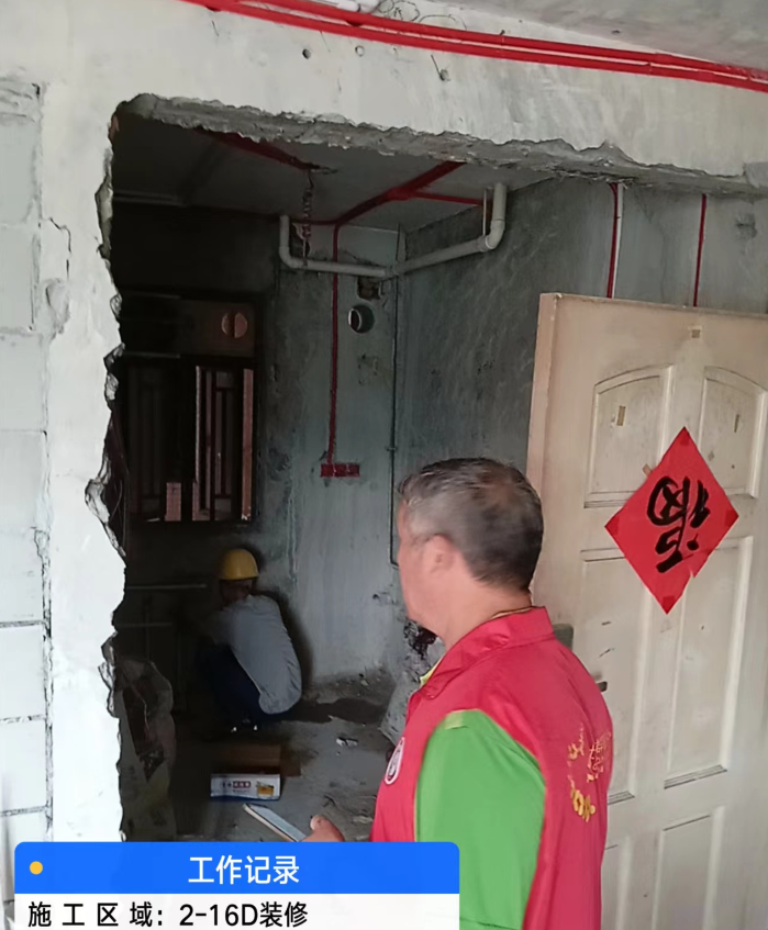 罗湖家园网讯:2025年8月26日下午4点,怡景社区峰景台小区网格员巡查小散工程,走访6户,确保小散工程安全施工。